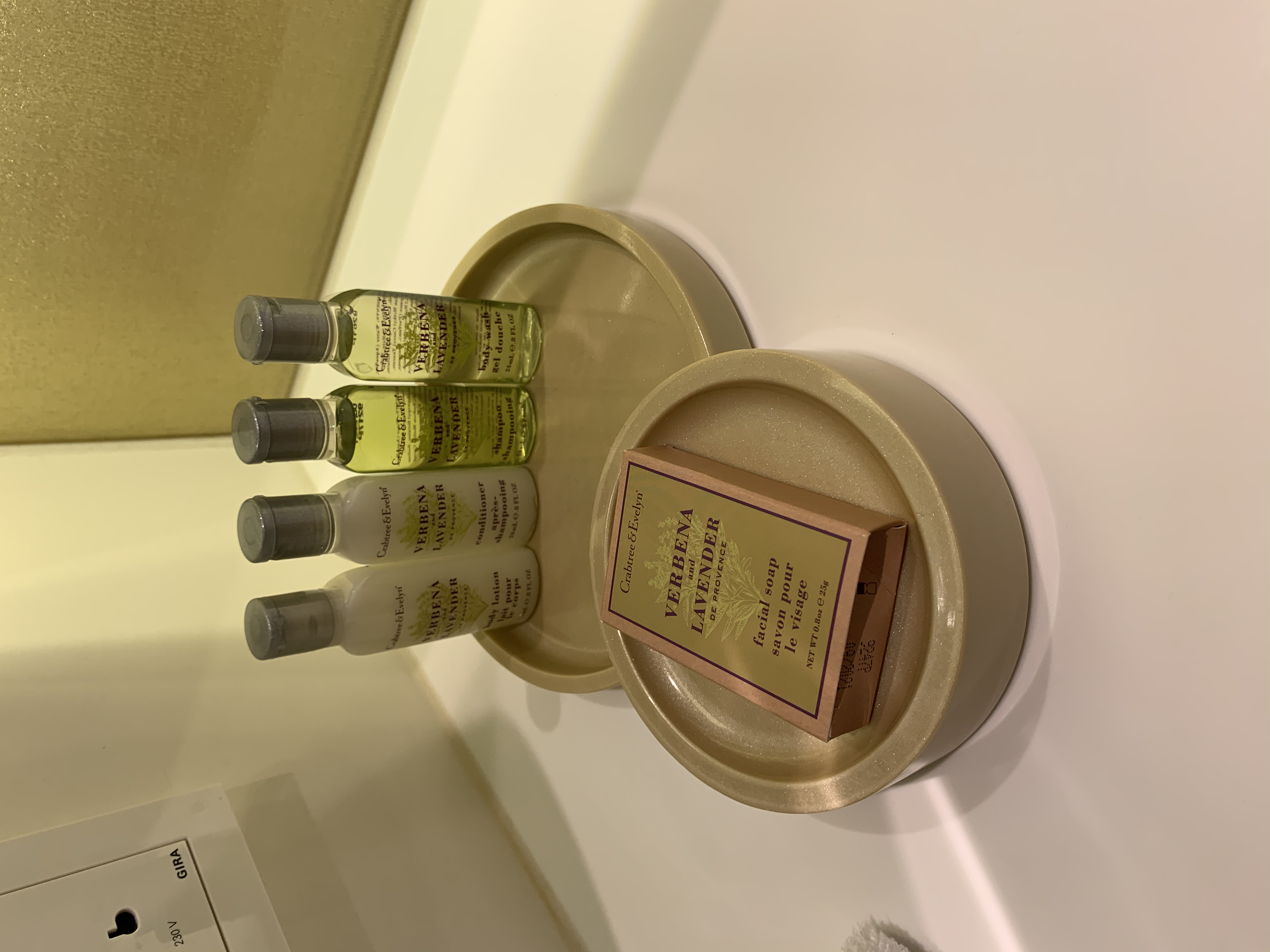 Im Eingang fiel direkt das moderne und luftig wirkende Design auf. Auf der rechten Seite befindet sich das Bad mit allem was man benötigt. Der Eingang dazu ist eher noch speziell durch die runde Tür abgetrennt.