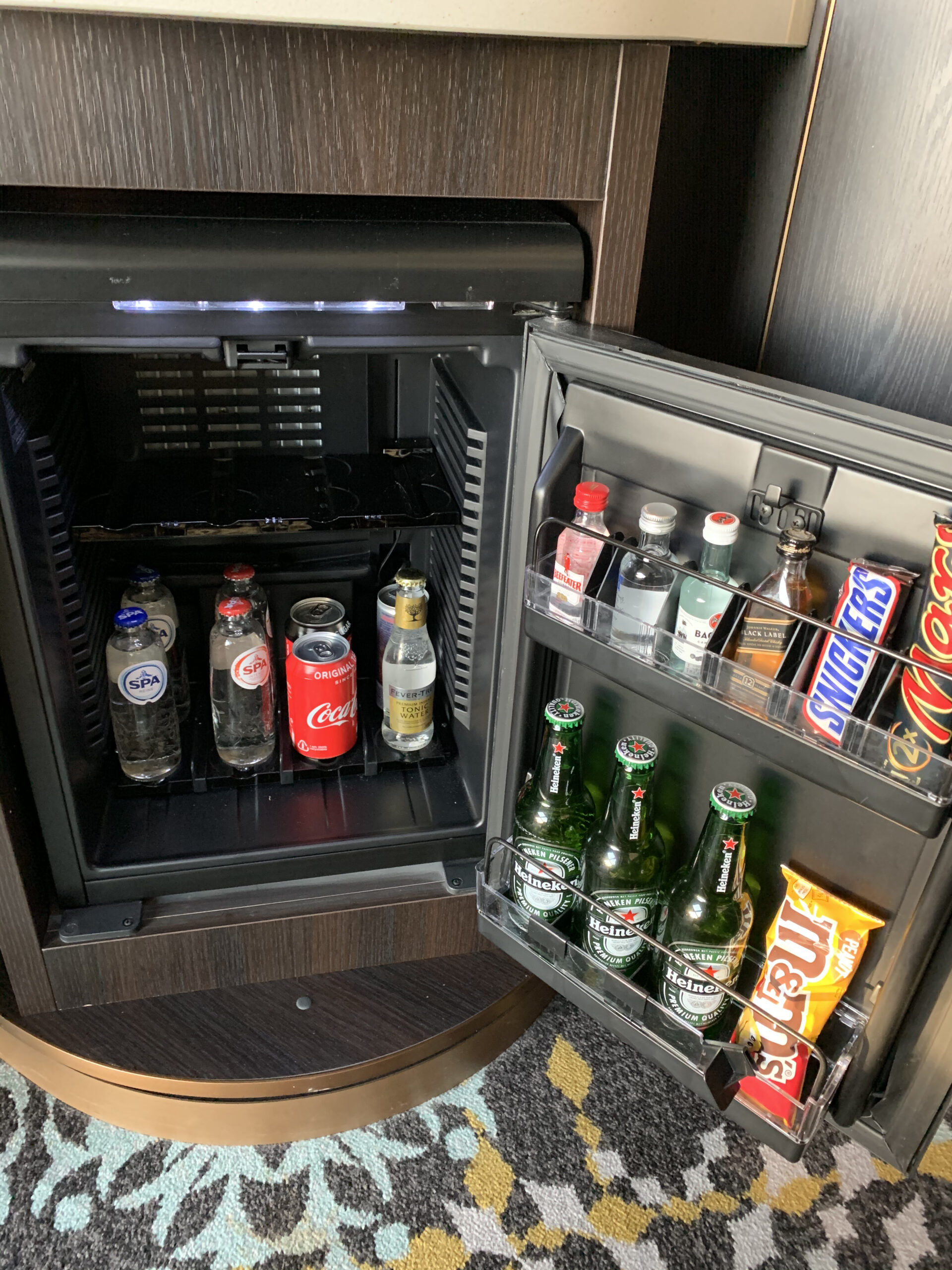 Ein Kleiderschrank und Safe runden das Gesamtbild noch ab. Oh eine Minibar hat es auch noch im Zimmer, aber bei den Preisen kann man auch ohne Weiteres zurück zum Flughafen zu einem Supermarkt laufen.