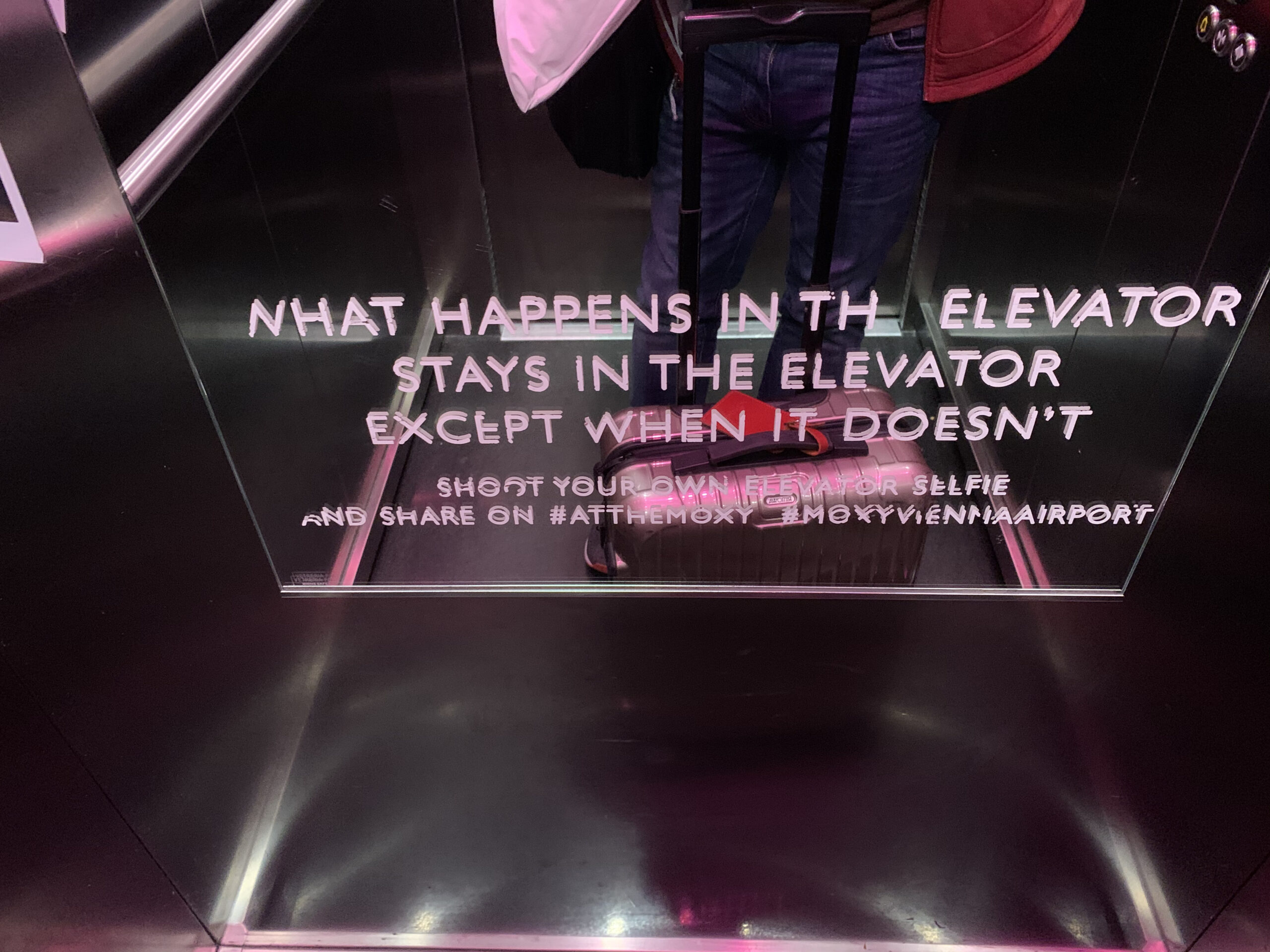 Eine Besonderheit bei den Moxy Hotels ist sicherlich wie sie versuchen sich als sehr jung zu verkaufen, so merkt man dieses schon alleine im Fahrstuhl (was ich aber als eine sehr nette Abwechslung betrachte)