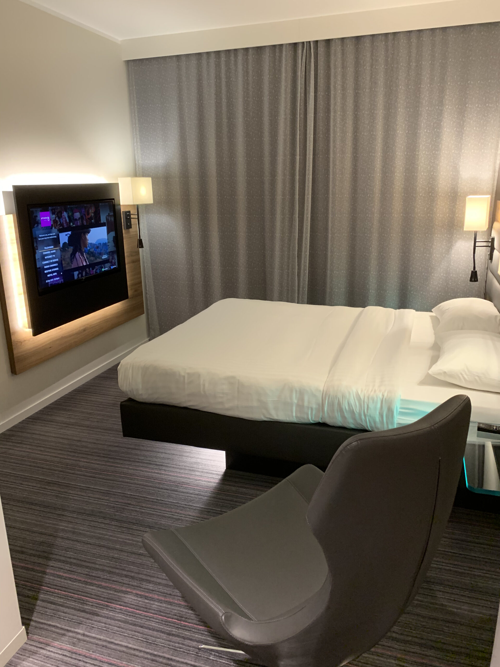 Ansonsten ist das Zimmer im typisch, jugendlichen Moxy Design gehalten. Wie immer ohne Telefon, also am besten vorher die App runterladen oder ein Abo haben in dem Anrufe im Ausland gratis sind.