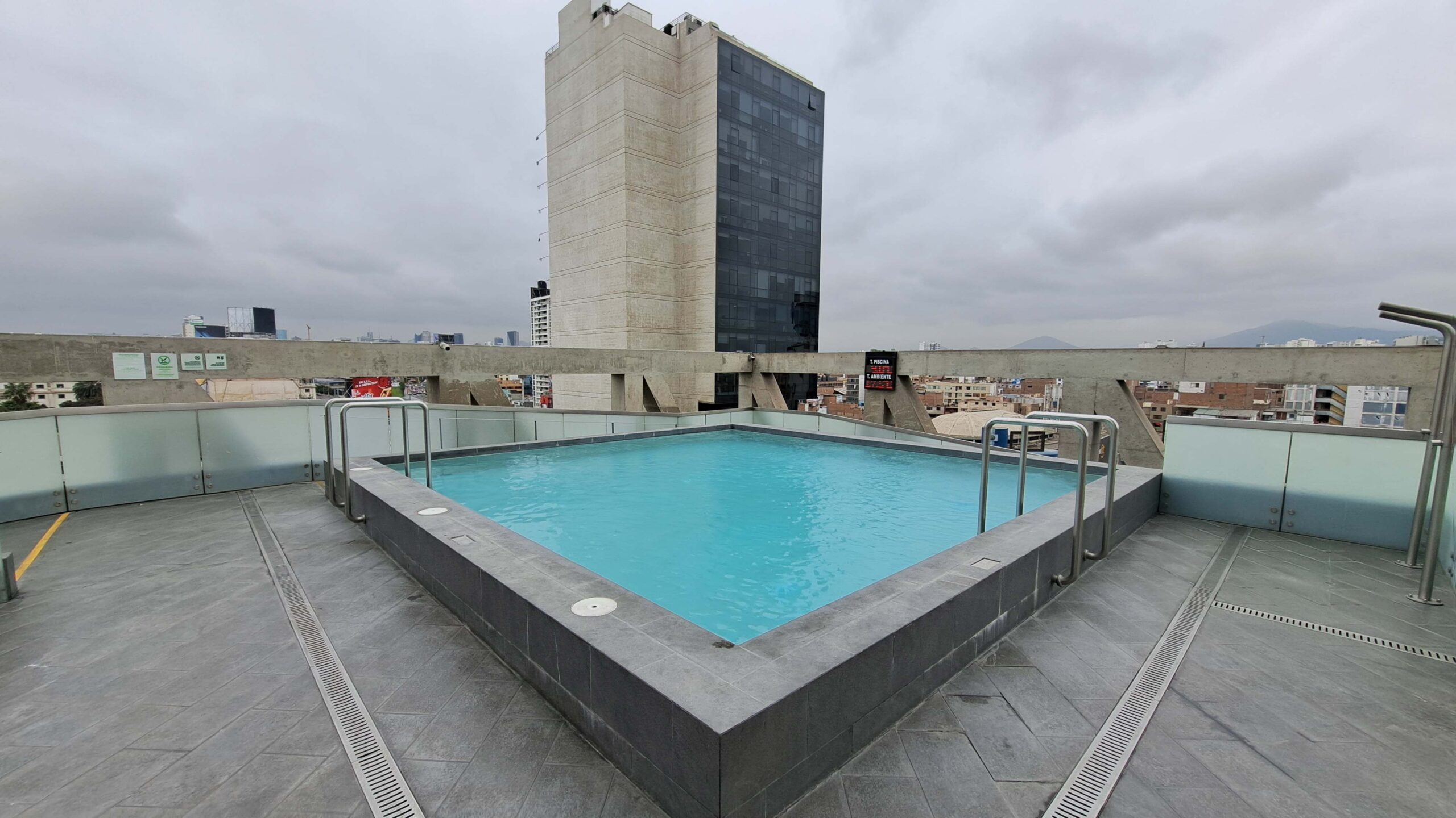 Ein Highlight im Hochhaus‑Stoff: Rooftop‑Pool mit Lounge und Bar – ein kleines, urbanes Paradies über den Dächern von Lima, leider aber nur an warmen Tagen offen und der Pool ist im europäischen Sommer nicht geheizt. Nach einem Spaziergang entlang der Malecon‑Promenade kann man hier abtauchen – wortwörtlich –, zurücklehnen, den Tag stilvoll ausklingen lassen.