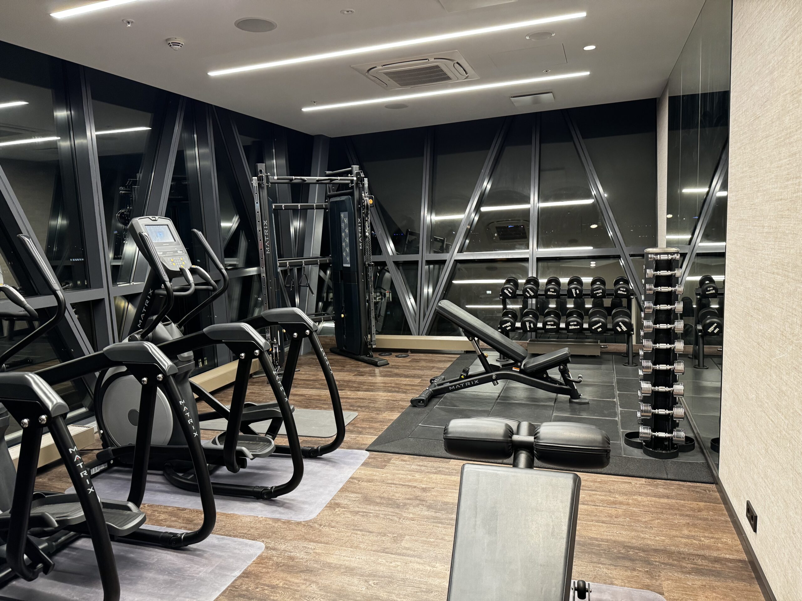 Um das Essen ich wieder abzutrainieren, hat es im obersten Stockwerk noch ein Gym welches bei Tageslicht einen tollen Ausblick über Riga bietet. Leider waren meine Bilder immer während des Abends. Dennoch ist das Gym soweit gut (aber auch nicht so gross).