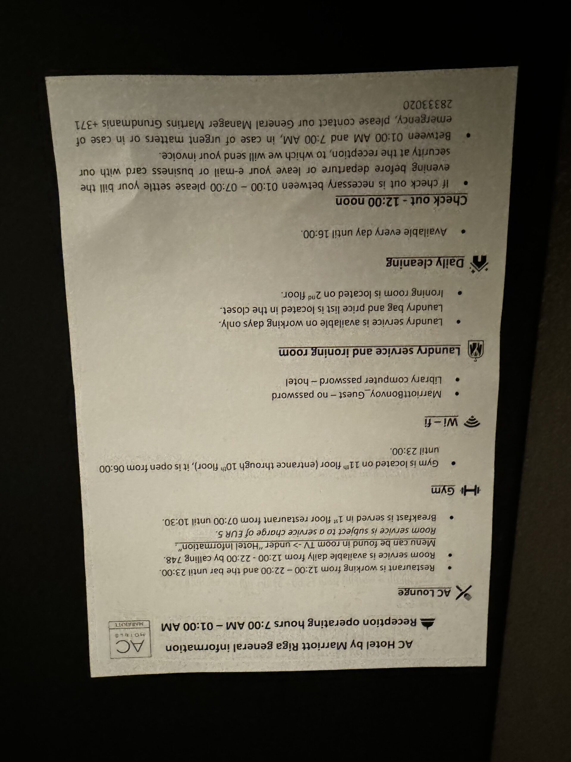 Mit der Zimmerkarte in der Hand und den nötigen Informationen zum Hotel ausgestattet, ging es dann aufs Zimmer.