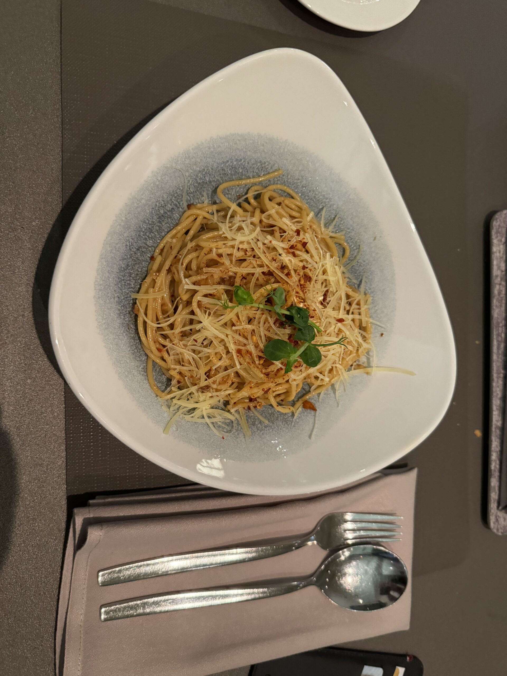 An einem Abend konnte ich da auch recht anständig im Restaurant auf der anderen Seite von der Rezeption essen. Die Spagetti waren wirklich gut und der Service ebenfalls.