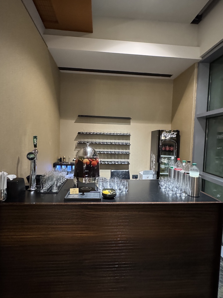 Daneben hat es noch ein kleines Buffett was allerdings nicht so ansprechend aussah. Auch die Cola gibt es an der Bar, und je nachdem wie sehr man dort beschäftigt" ist kann man sie sich auch selbst einschenken. Das Buffett bestand hauptsächlich aus abgepackten Sachen, etwas Salat und Keksen.