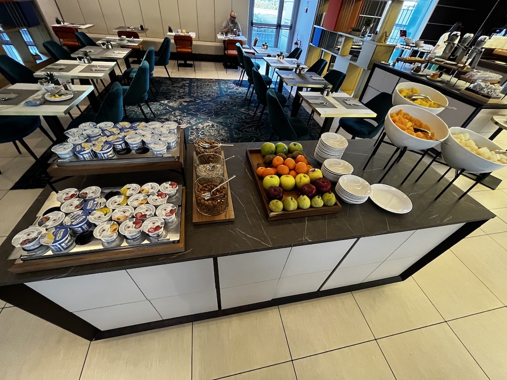 Ich würde auf die Frühstückszeiten hingewiesen (inklusive dank Diamond Status). Hier konnte ich nur wenige Bilder machen da sich die Gäste für die Bilder sagen wir ungünstig" platziert hatten. Die Essensauswahl war breiter als die Bilder vermuten lassen. Nicht so luxuriös wie woanders, aber für italienische Verhältnisse wurde man hier auch gut satt.