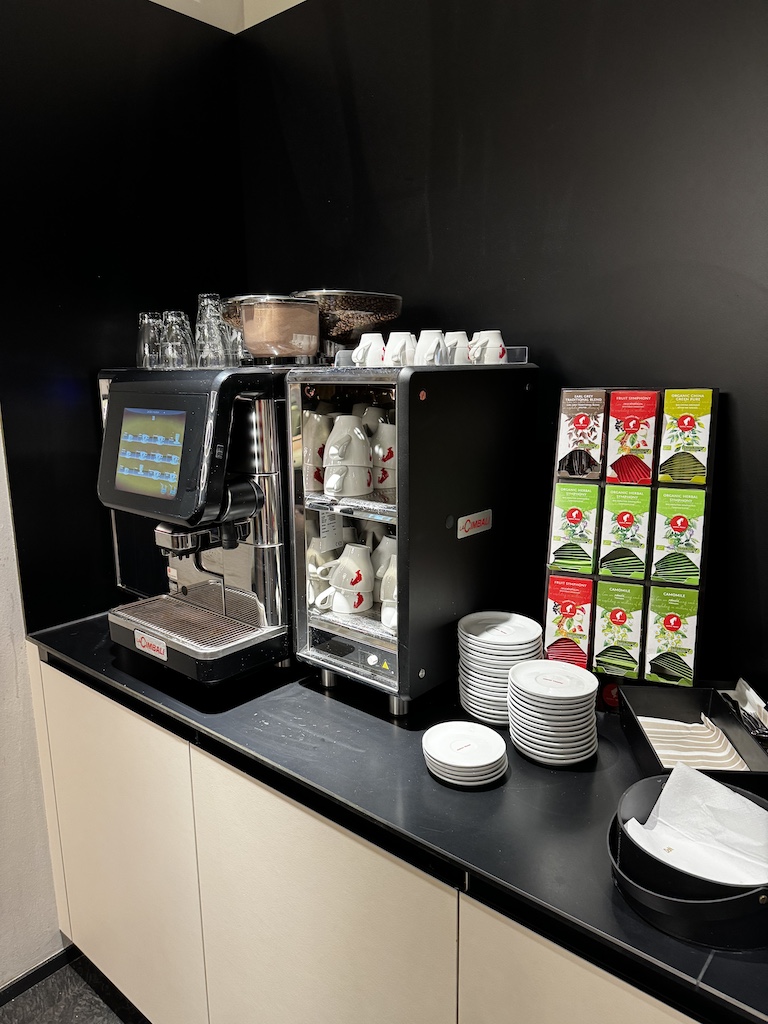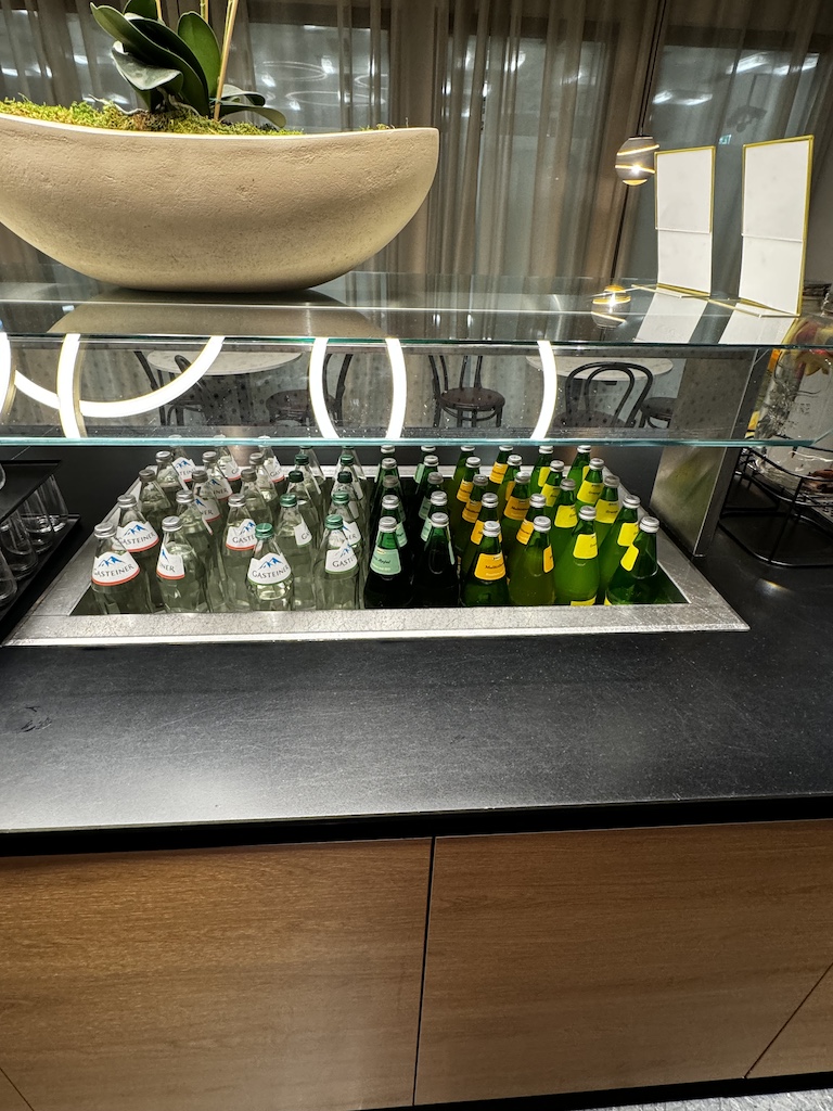 Ganz hinten in der Lounge befindet sich ein kleines Angebot an Getränke sowie einige Süssspeisen.