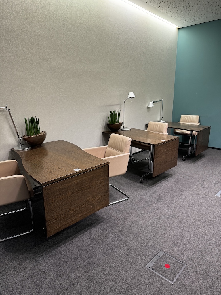 Auf der linken Seite hat es noch hinter dem Empfang einen kleinen Raum mit Tischen der sich zum arbeiten anbietet.