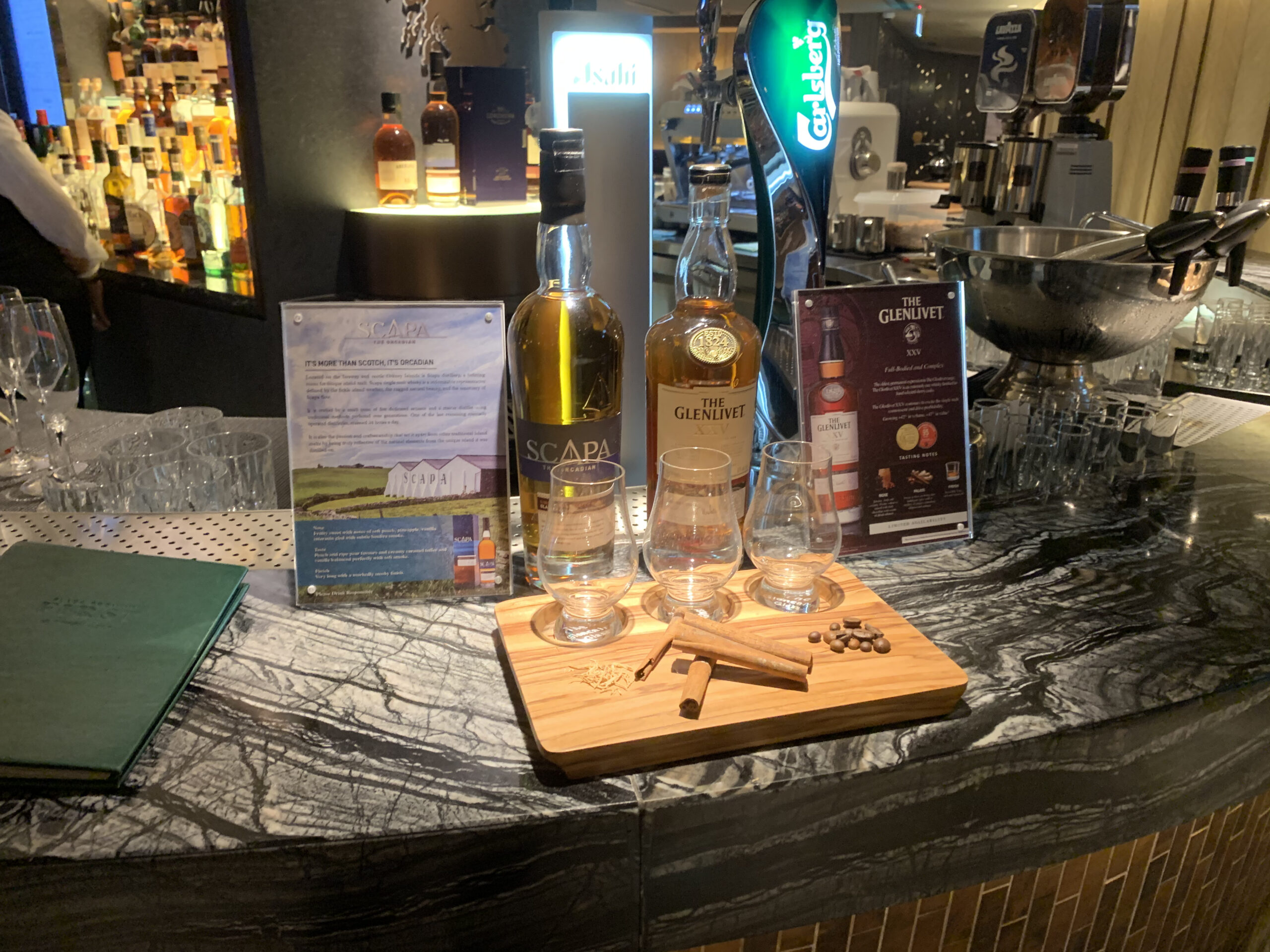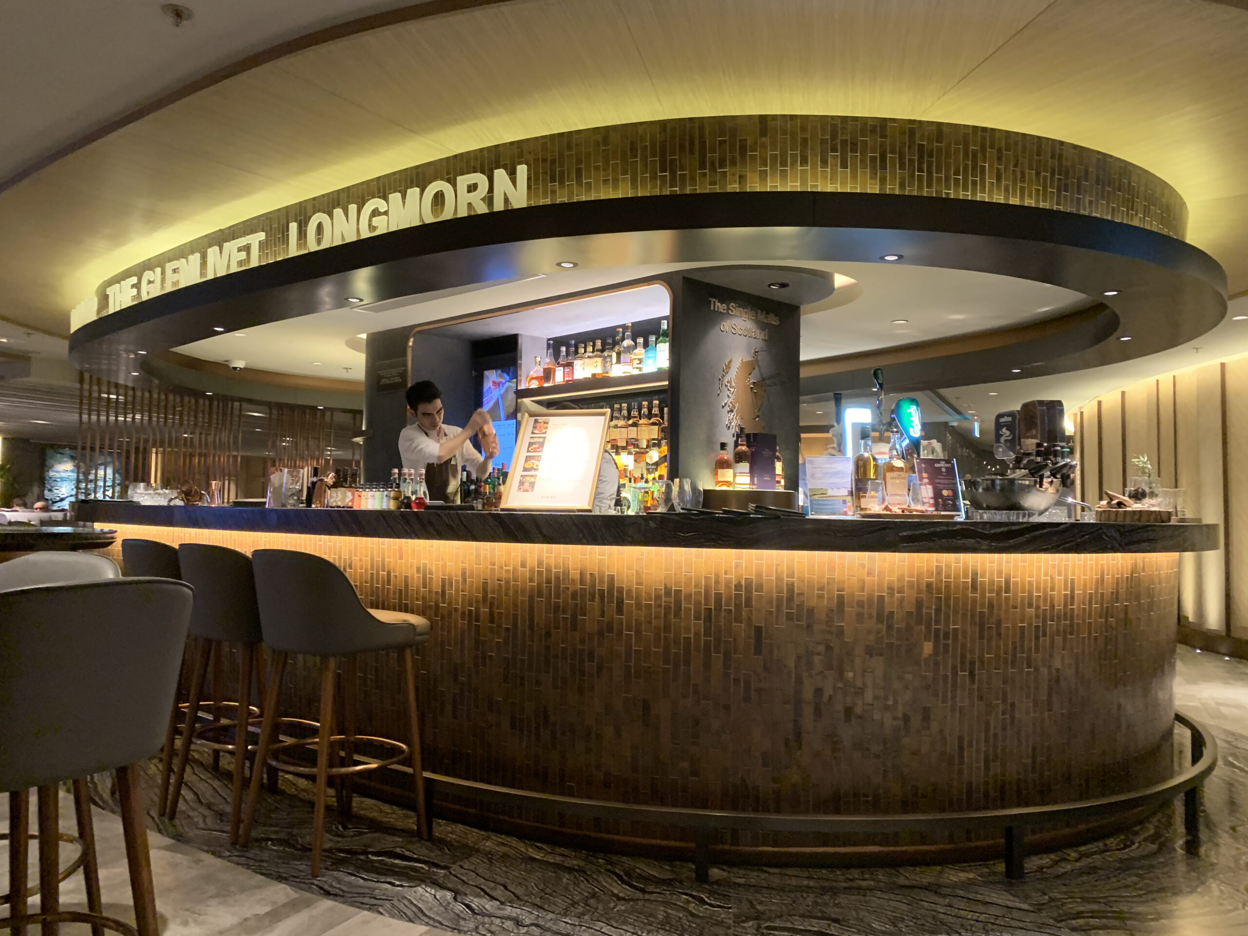 Zum einen befindet sich eine bediente Bar in der Lounge bei der man sich wirklich Mühe gibt den genauen Geschmack des Gastes zu treffen. Zum anderen hat es eine Art bedientes Restaurant mit einer doch sehr guten Karte die ich so nicht erwartet hätte. Dazu hat es noch einige Kleinigkeiten die man selbst aussuchen kann.
