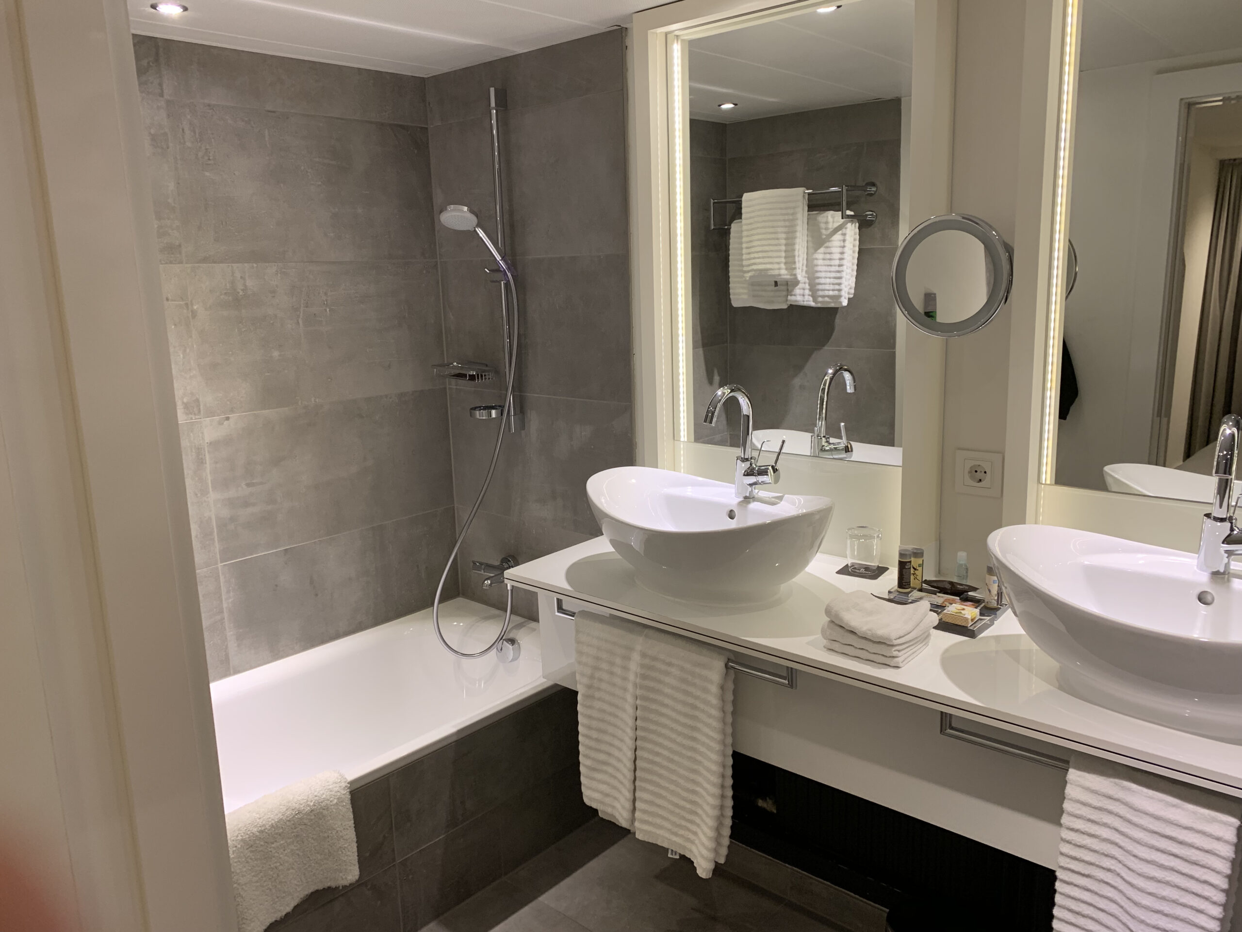 Dieses ist doch sehr modern und hell ausgestattet. Neben einer Badewanne hat es noch eine separate Dusche. Kleine Amenities wie Shampoo / Conditioner sind ausreichend vorhanden.