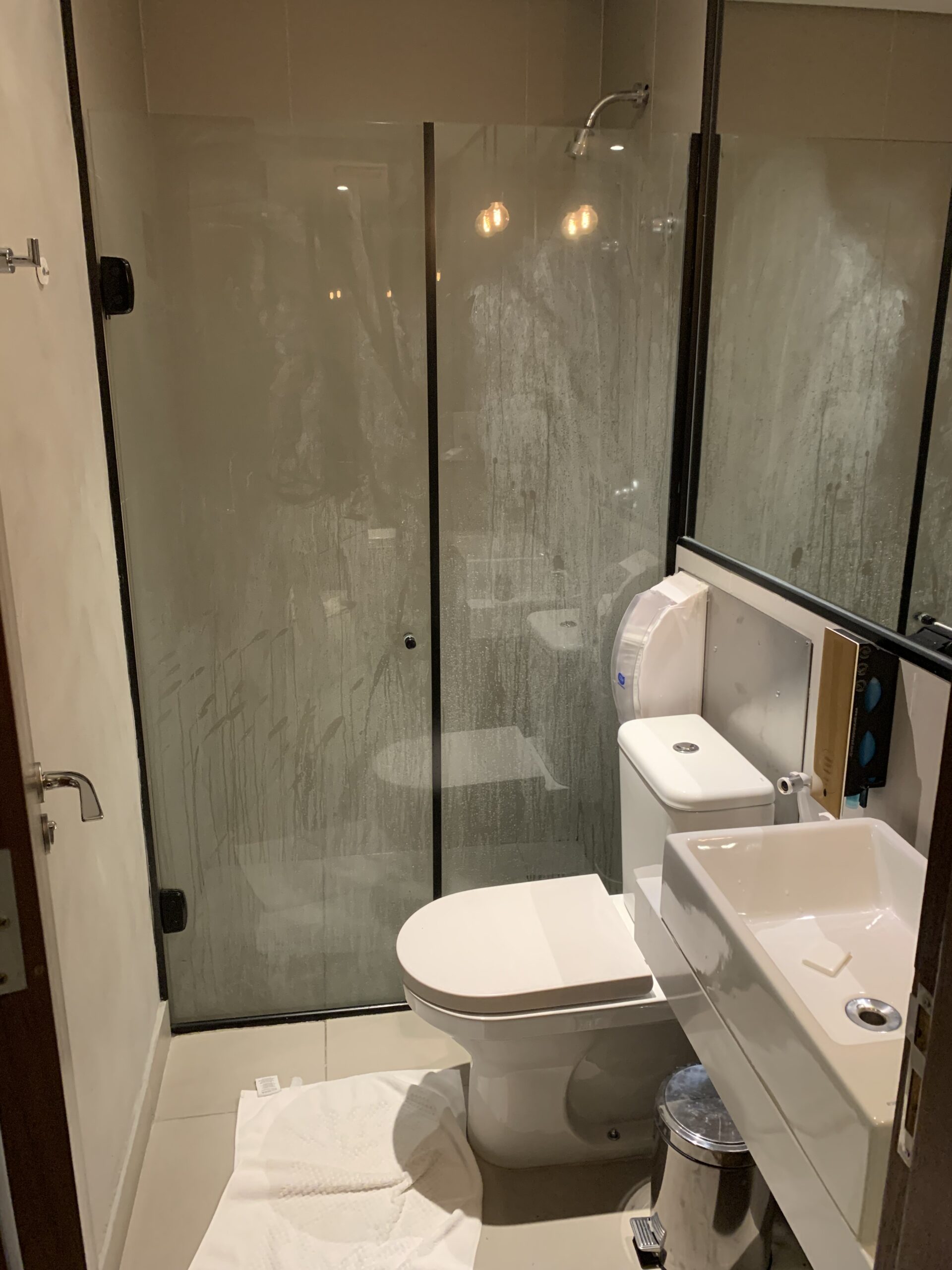 Duschen und Toiletten hat es ebenfalls in der Lounge. Dort war die Sauberkeit eher Glückssache. Die Dusche konnte ich nur vor der Reinigung rasch anschauen, daher bezieht sich mein Kommentar auch vielmehr auf die Toiletten. Für die Duschen gilt noch die Besonderheit, dass man nur mit der American Express Platinum, Titanium und Elo Nanquim diese kostenlos nutzen kann.