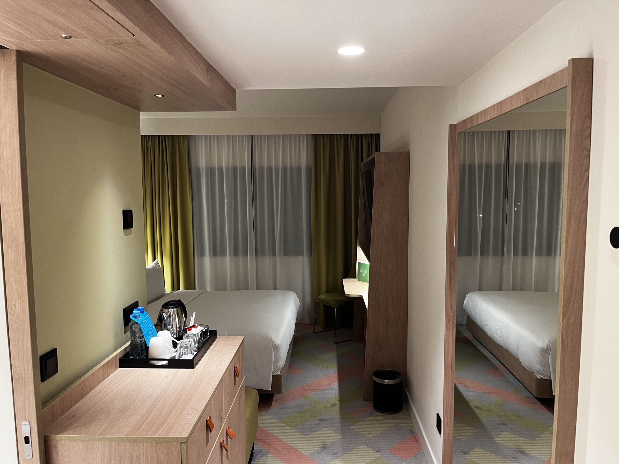 Diesmal habe ich den Aufenthalt direkt über die Hilton App gebucht, da die Cashback Seite einfach nicht richtig funktionieren wollte. Der Preis war absolut in Ordnung und im Gegensatz zum Hilton Garden Inn Krakow Airport um die 60 CHF günstiger. Dazu wird noch ein kostenloser Shuttle angeboten (okay ein Uber dorthin kostet lediglich 2 CHF). Somit war es sehr schnell entschieden, dass wir hier eine Nacht buchen würden. Die Fahrt zum Hotel dauert ca. 8 Minuten und erfolgt ab dem Bus Stopp 3. Vorher muss man allerdings beim Hotel anrufen und die Fahrt buchen. Der Bus Stopp ist übrigens sehr gut im Terminal ausgeschildert, so dass man dort wirklich innerhalb vier Minuten des Flugzeuges ist (sofern kein Gepäck aufgegeben wurde)