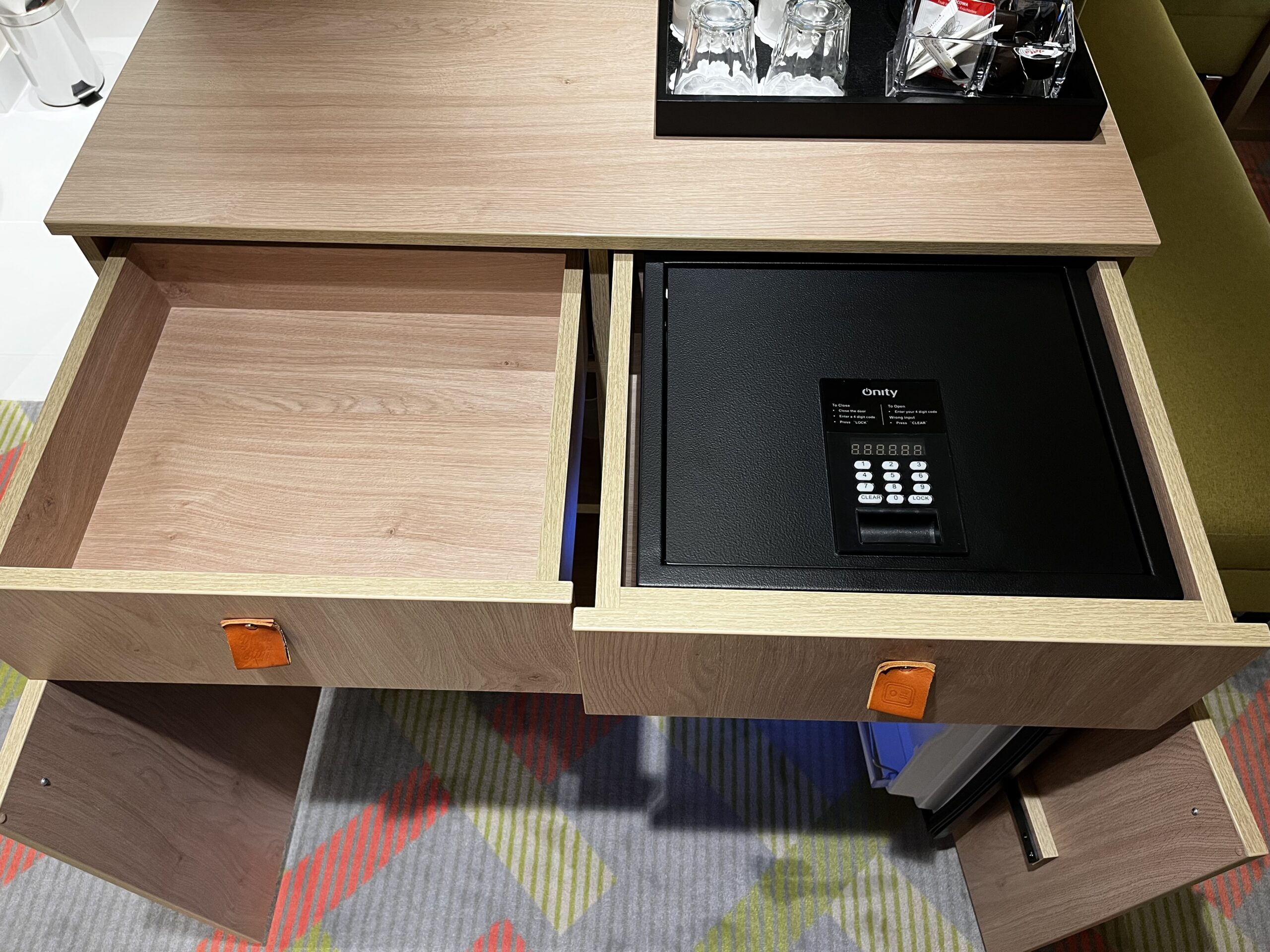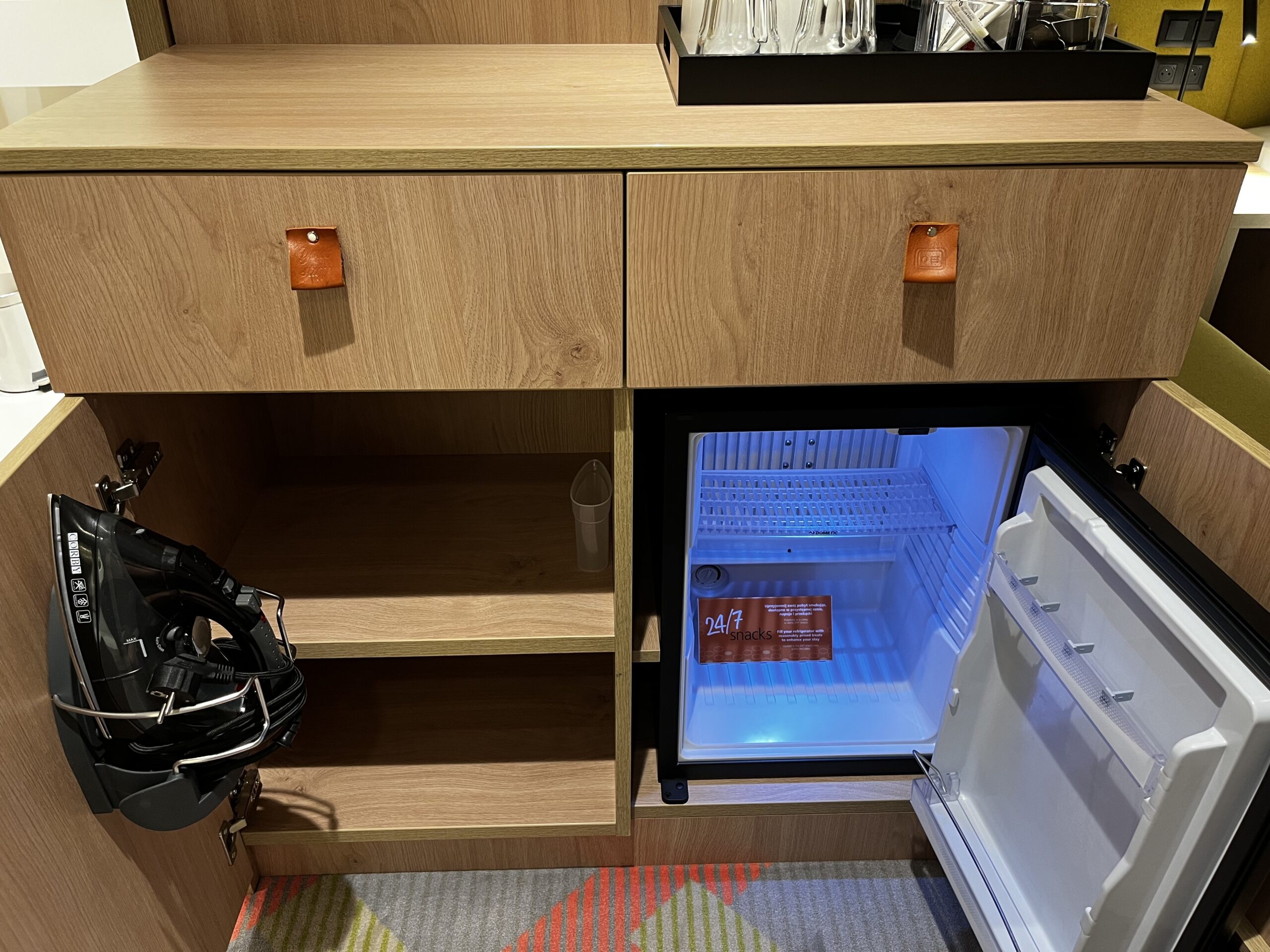 Dann hat es noch einen Kühlschrank, wie auch einen Safe und Wasserkocher um sich Kaffee / Tee zuzubereiten. Zwei gratis Wasserflaschen gab es ebenfalls.