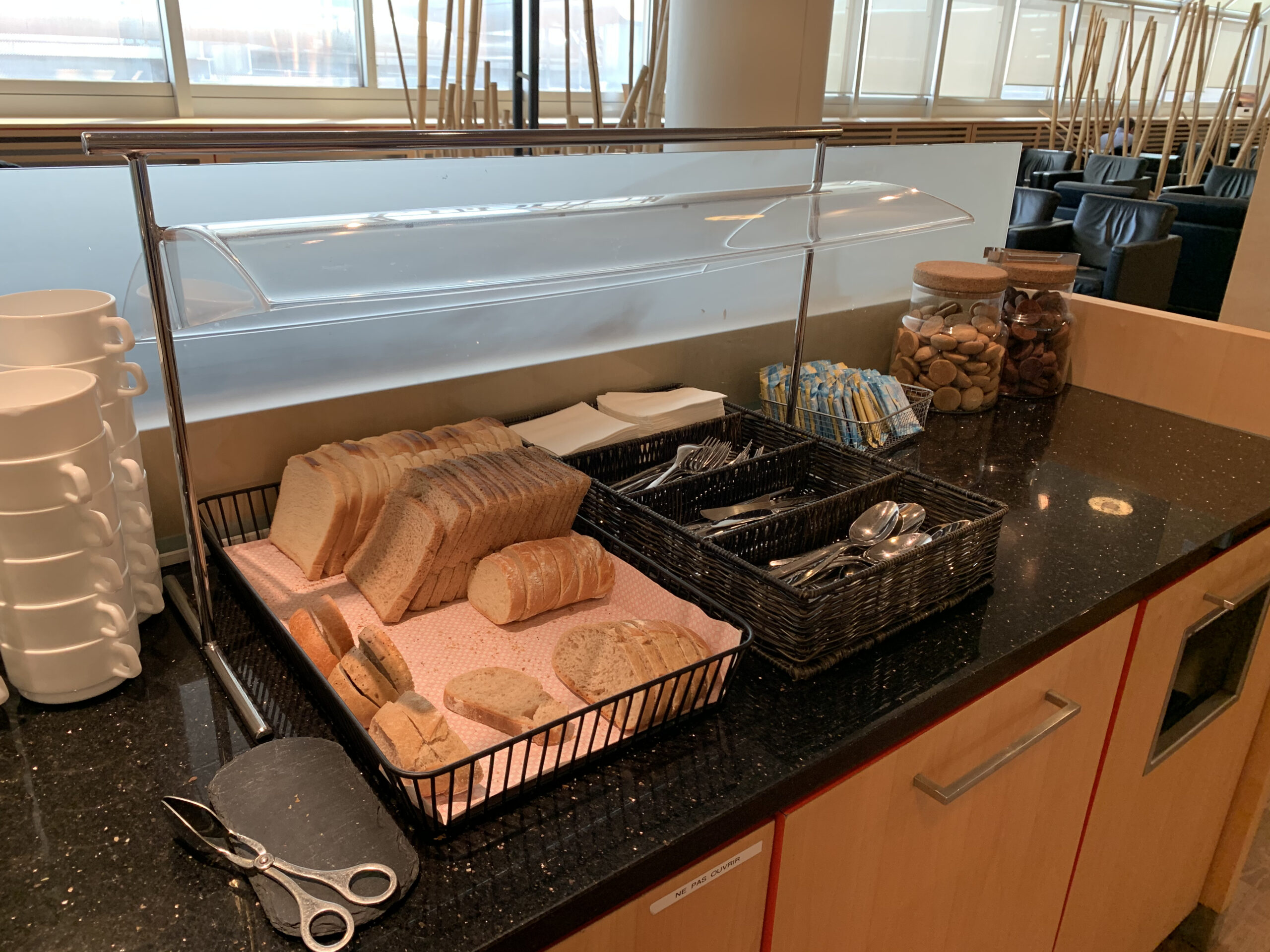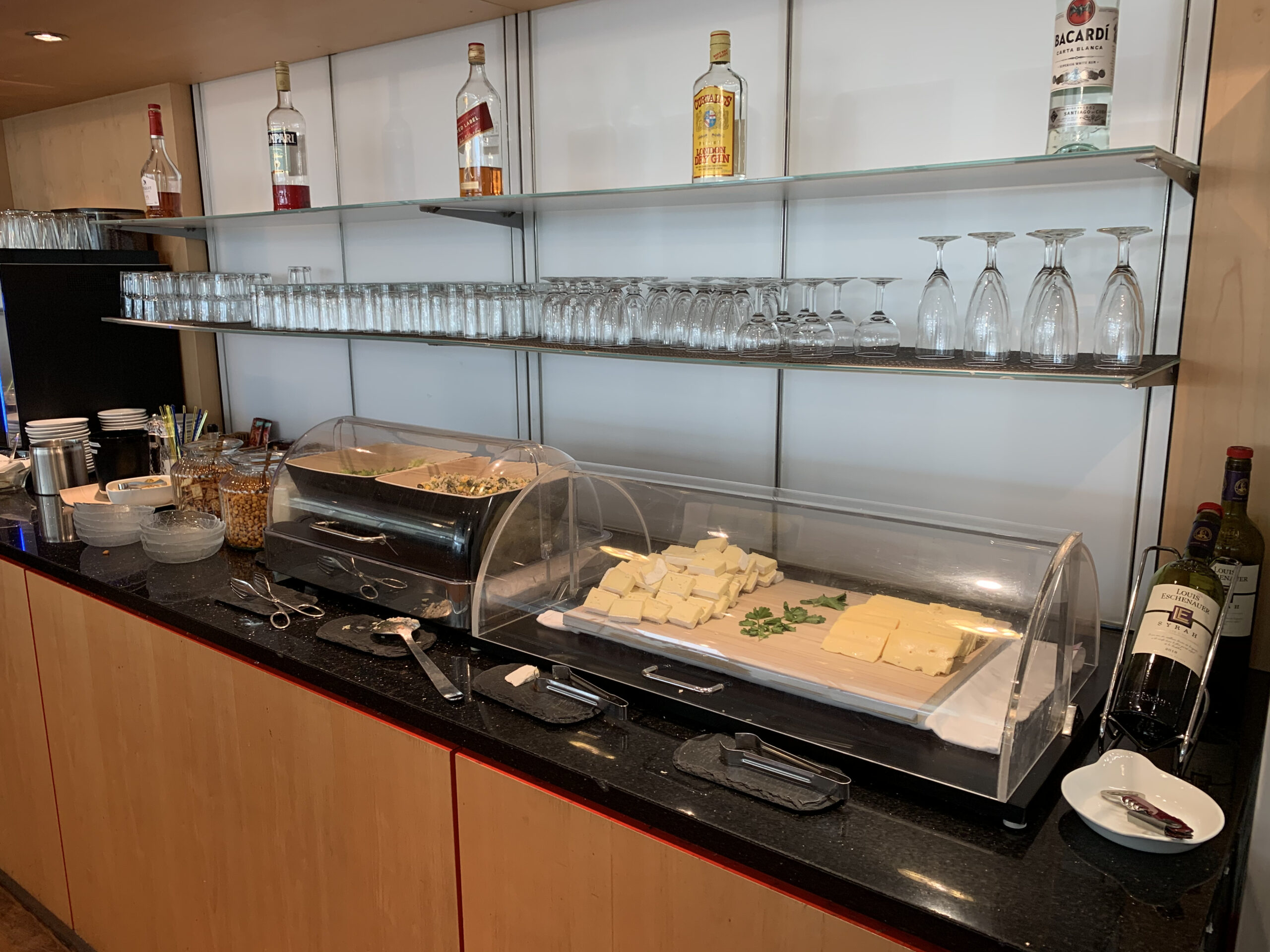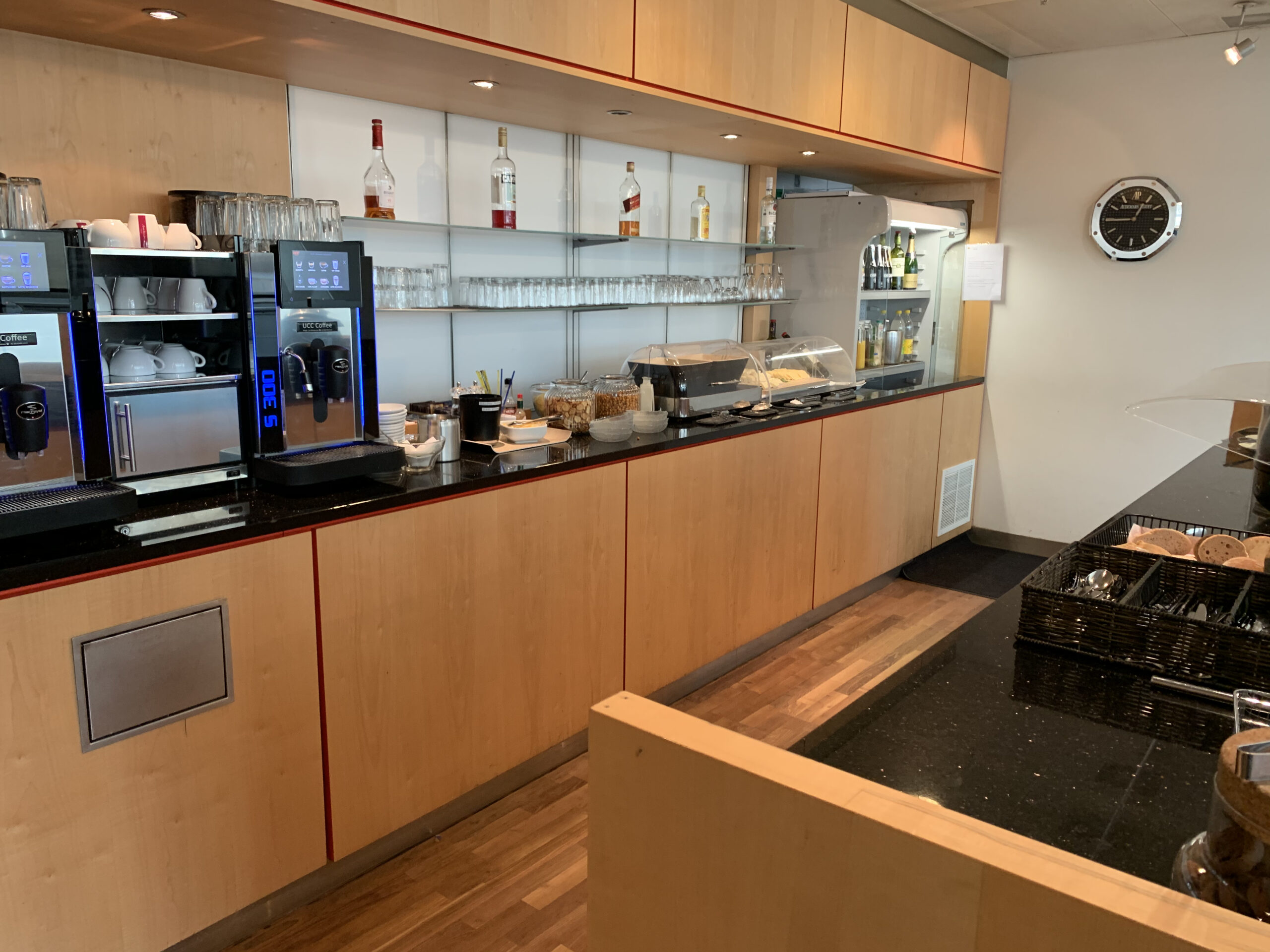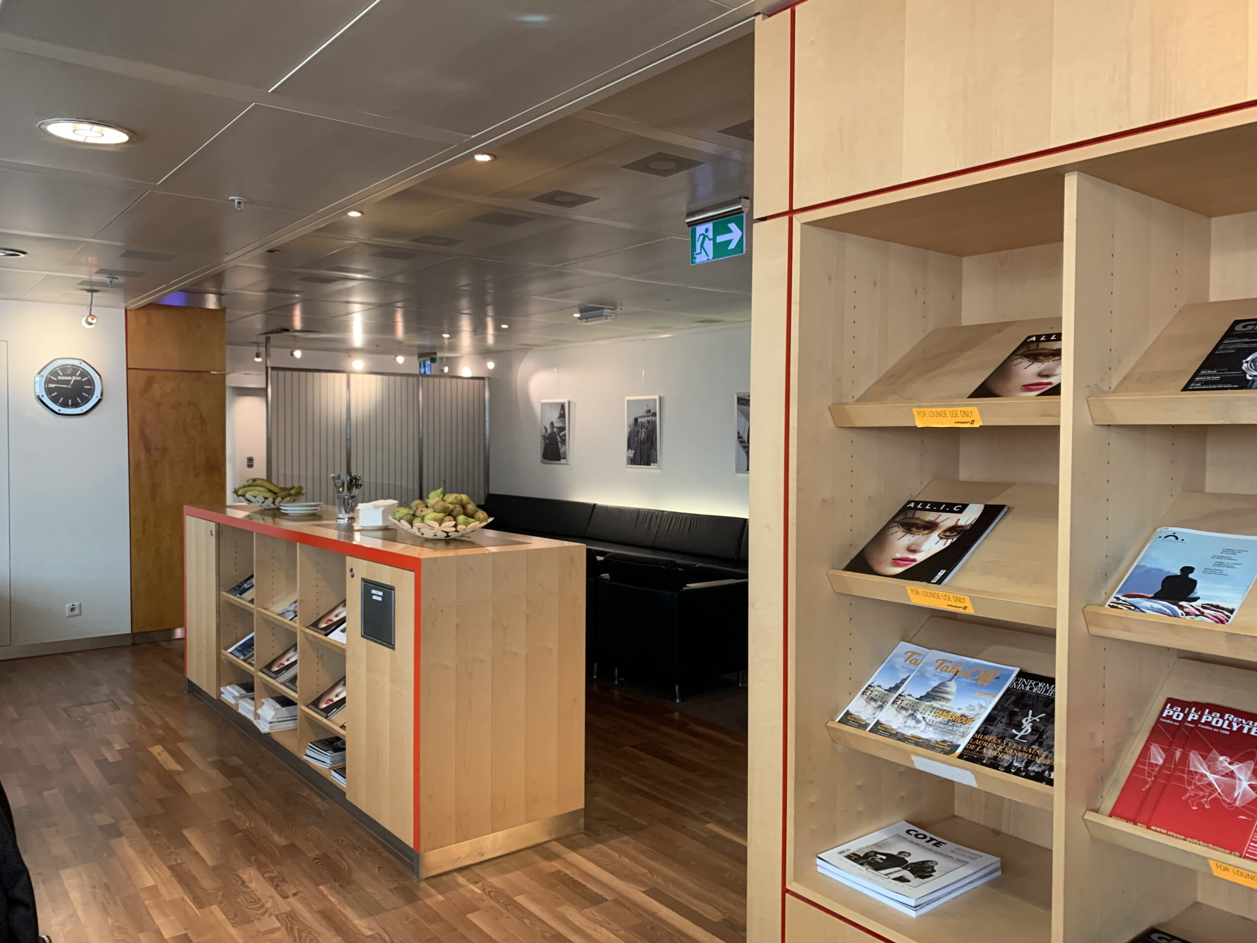 Die Lounge besteht eigentlich nur durch eine grossen Raum. Auf der linken Seite gibt es dann Speisen/Getränke in einem separaten Bereich. Auf der rechten Seite hat es nur Sitzmöglichkeiten und einige Zeitschriften. Steckdosen sind nicht ganz so zahlreich vorhanden wie man es sich heutzutage wünschen würde.