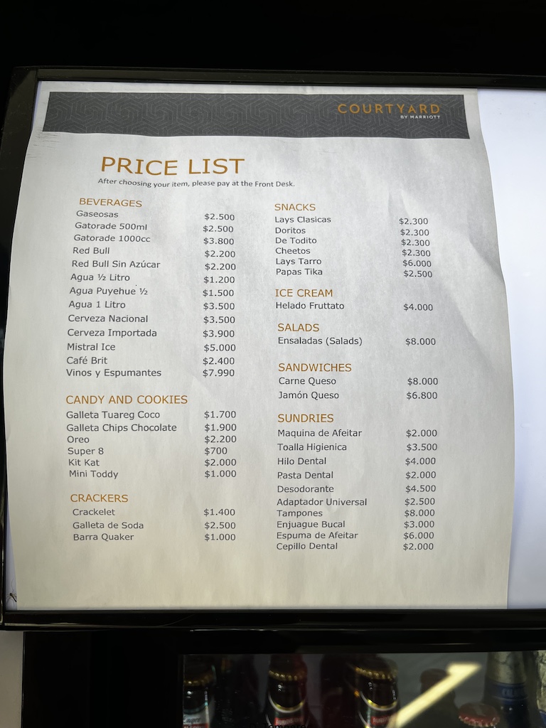 Direkt am Eingang vom Couryard Hotel befindet sich noch ein kleiner Mini-Market. Wobei hier wirklich die Betonung auf Mini gelegt werden muss. Die Preise habe ich dennoch einmal fotografiert, ich hoffe man kann es gut genug lesen.
