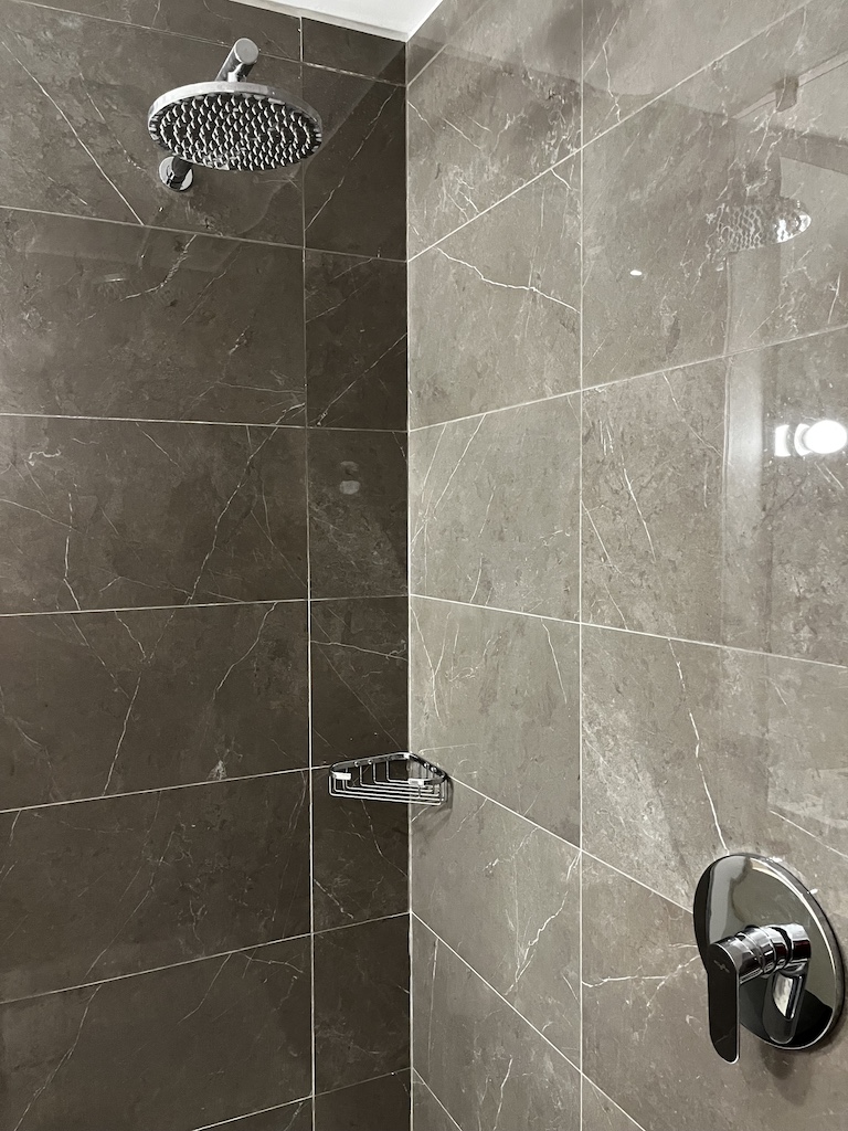 Es ist nicht sonderlich gross und bei der offnen Dusche war ich erst skeptisch. Aber für so kurze Zeit ist es ausreichend und was ich persönlich toll fand war, dass die Duschmittel in kleinen Flaschen zur Verfügung gestellt werden.