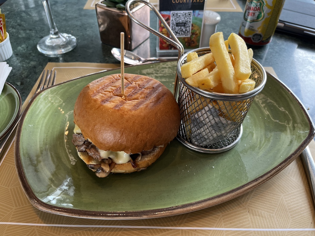 Am ersten Tag hatte ich dann doch irgendwann Hunger und habe mir etwas im Restaurant bestellt. Die Bedienung war sehr freundlich und nach kurzer Zeit kam auch die sehr schmackhafte Mahlzeit. Klar die 10 USD haben dafür nicht komplett gereicht, aber an sich waren alle Preise sehr angemessen. Die Speisekarte kann man via QR Code einsehen, ich habe davon hier ebenfalls einige Bilder gemacht.