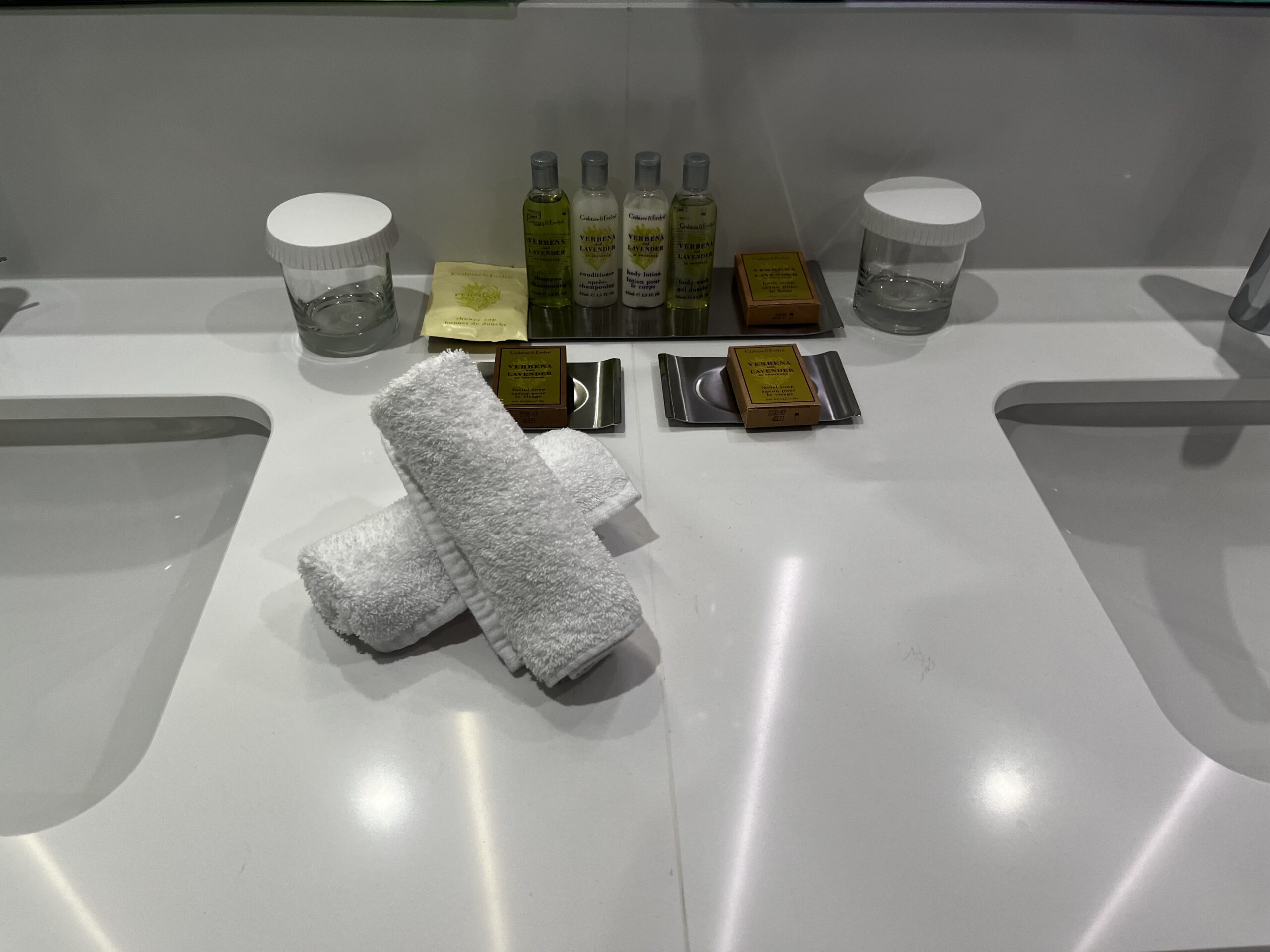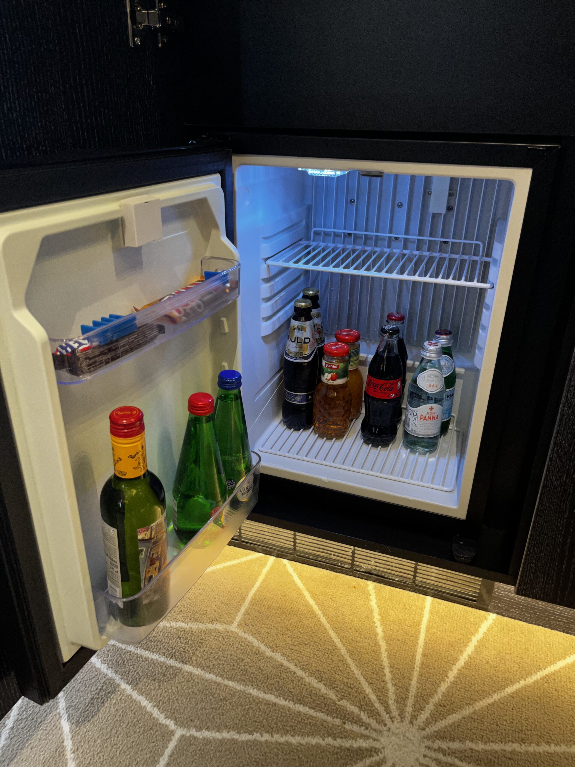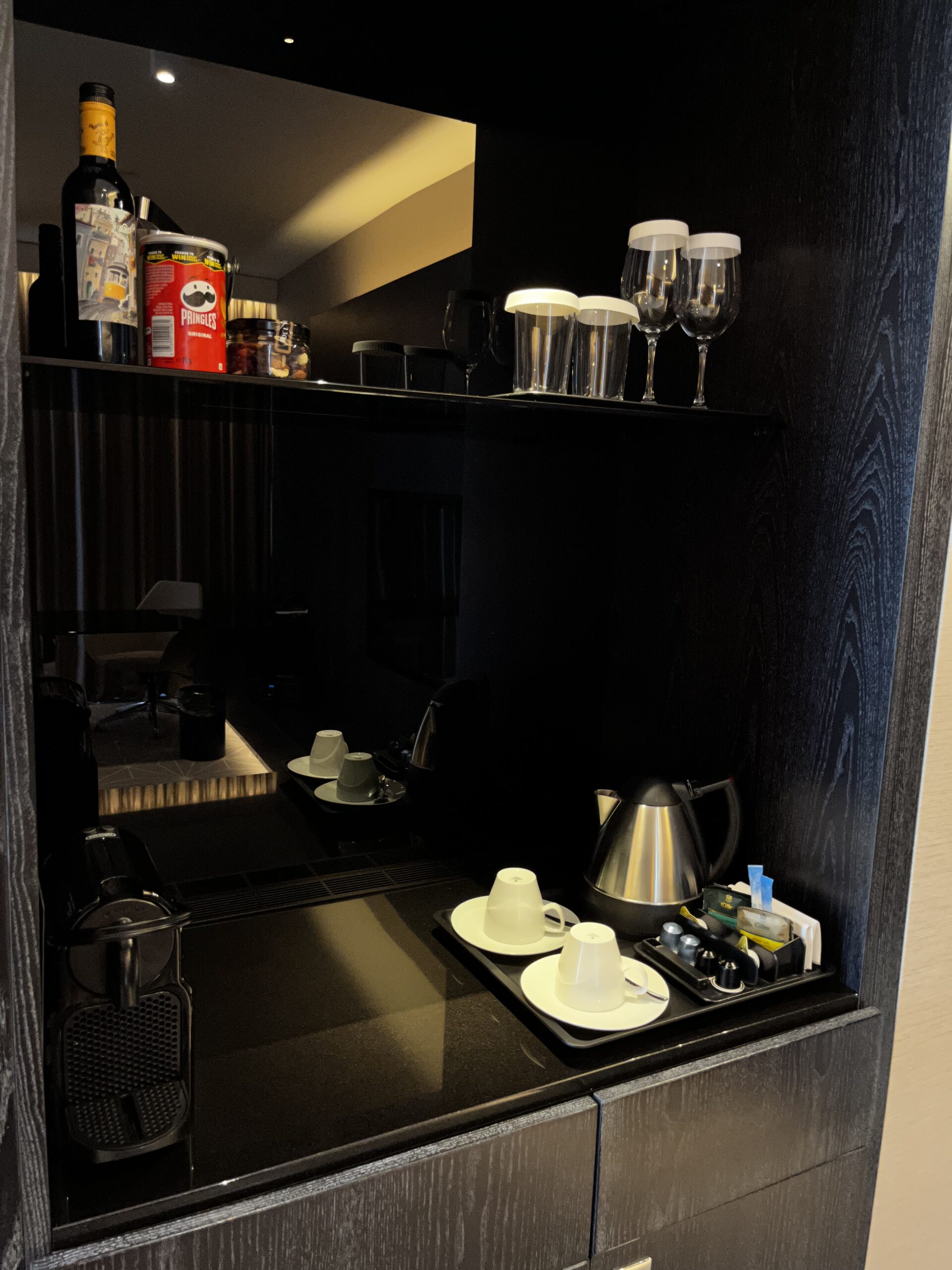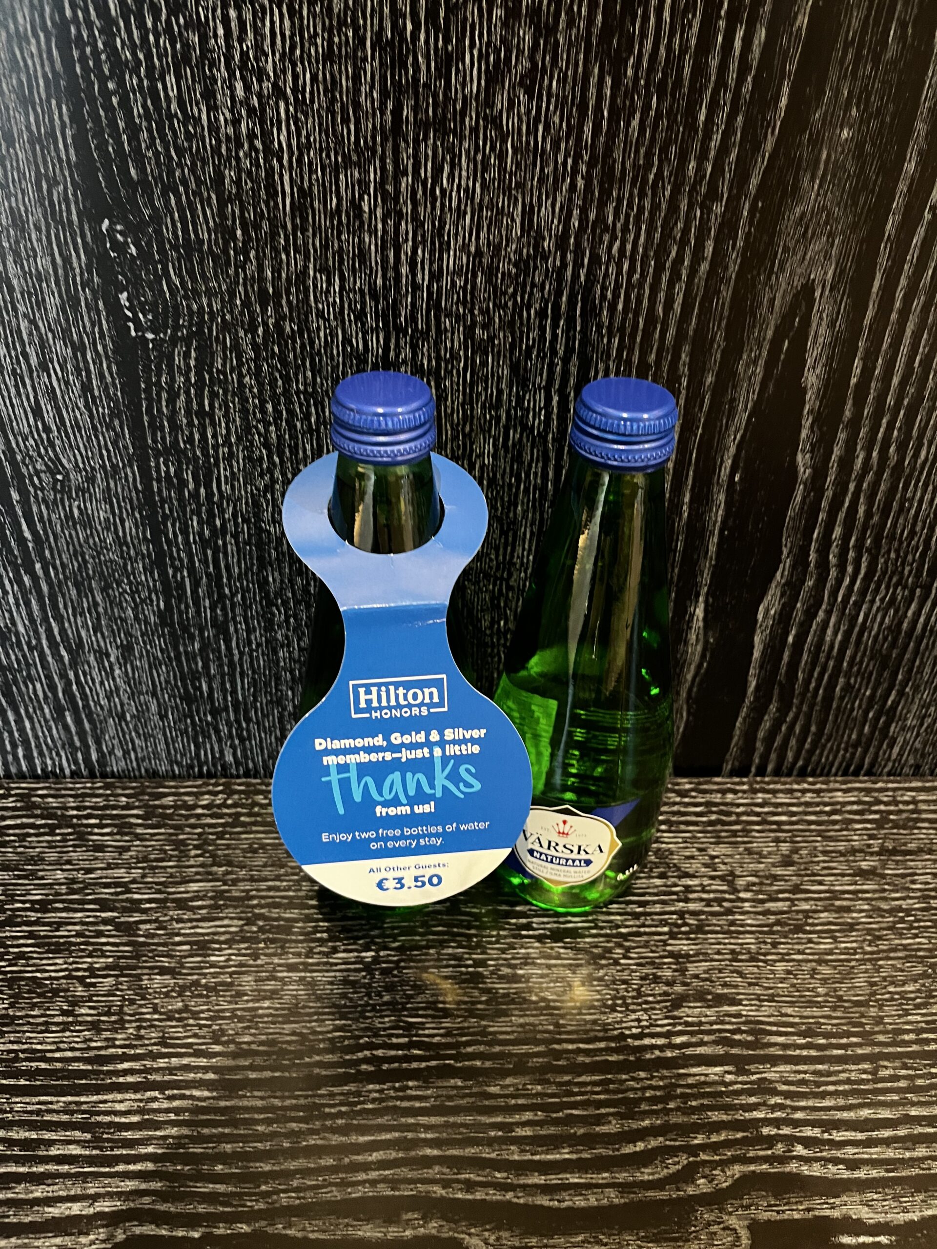 Auch hat es hier noch eine kostenpflichtige Minibar, sowie die Möglichkeit sich Kaffee/Tee zuzubereiten. Zwei Wasserflaschen sind als Statuskunde ebenfalls inklusive und erwarteten mich. Leider gab es ansonsten kein besonderes Amenity oder einen Brief.