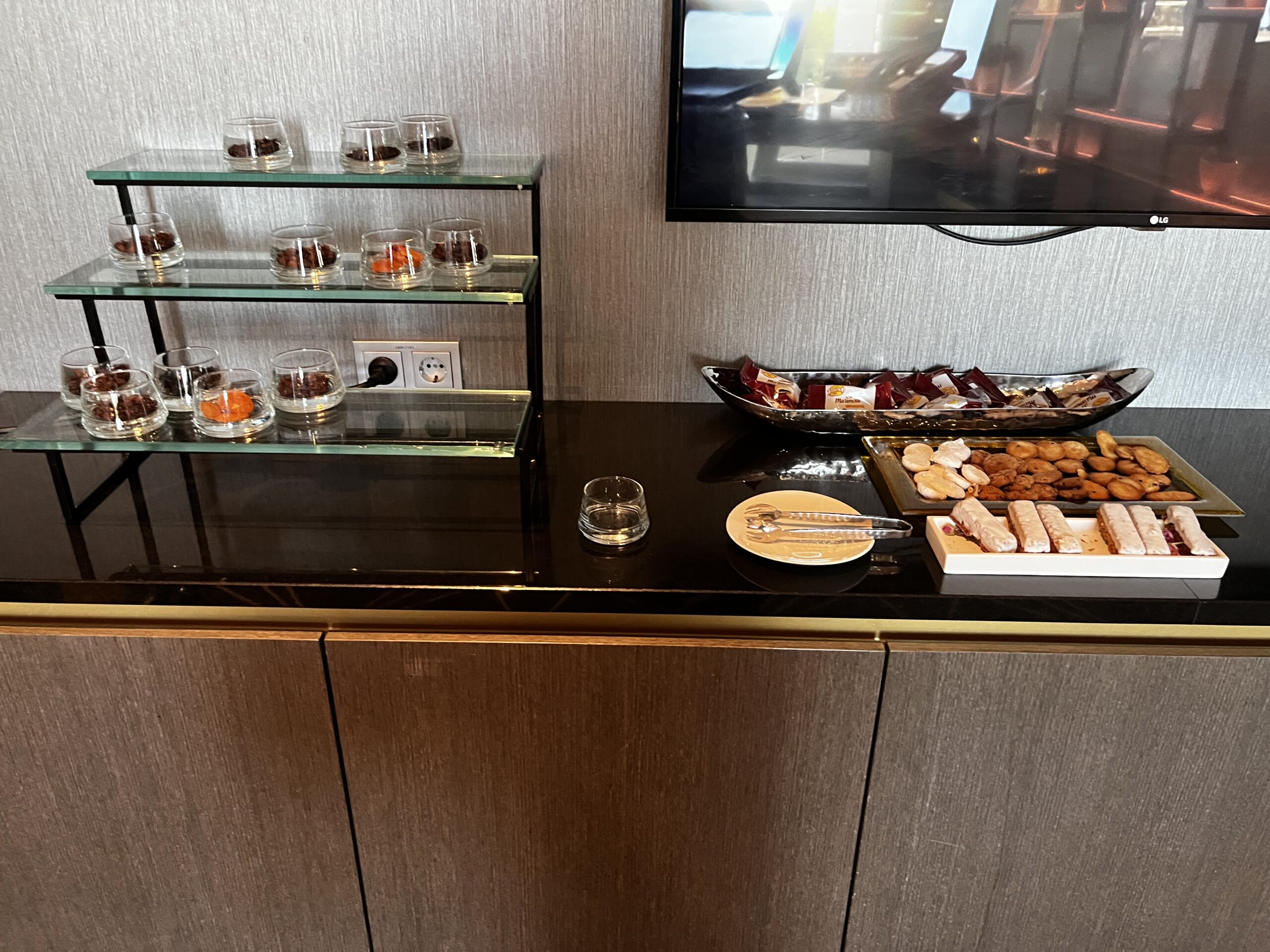 Im Moment ist die Executive Lounge noch immer geschlossen. Es ist aber schön zu sehen, dass man im Restaurant die Möglichkeit bietet, sich zur Happy Hour" mit kleinen Snacks, wie auch unterschiedlichen (alkoholischen) Getränken zu versorgen. Während der anderen Zeit kann man sich Softdrinks wie auch Nüsse etc. nehmen.