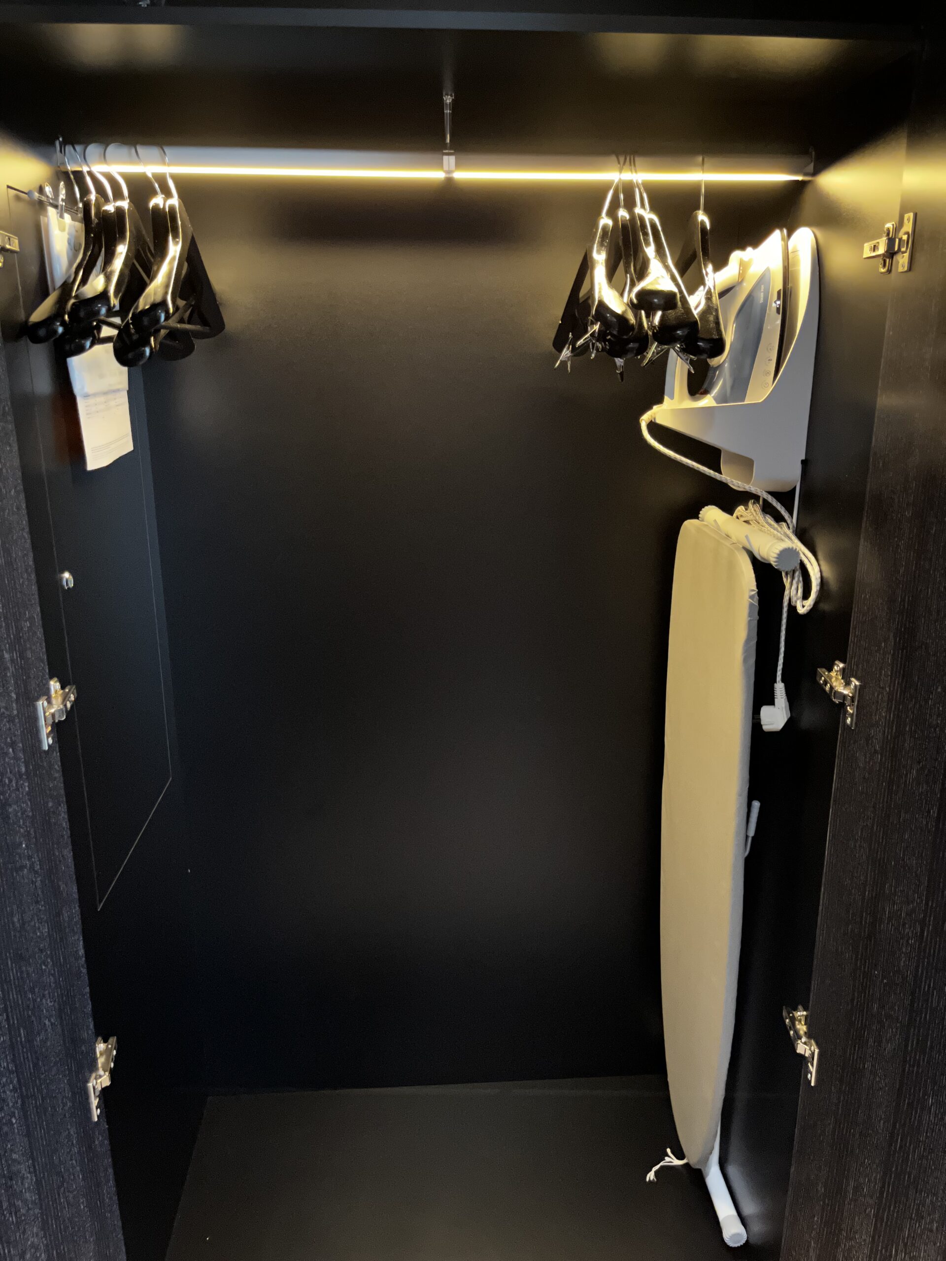 Der erste Eindruck vom Zimmer war sehr gut und es war auch einwandfrei gereinigt. Auf der linken Seite befindet sich ein Schrank mit Bügelbrett, Safe, Bademantel und Föhn.