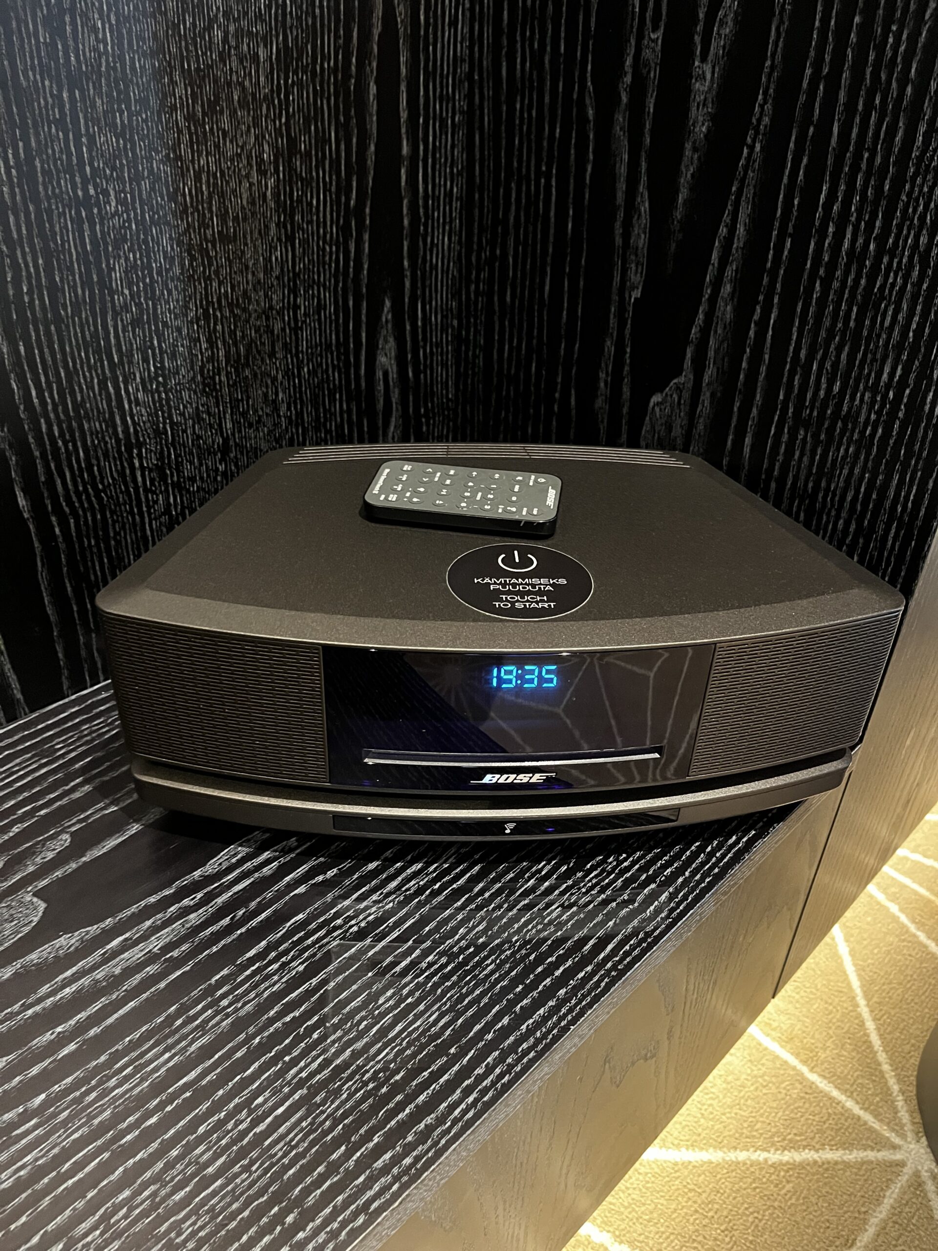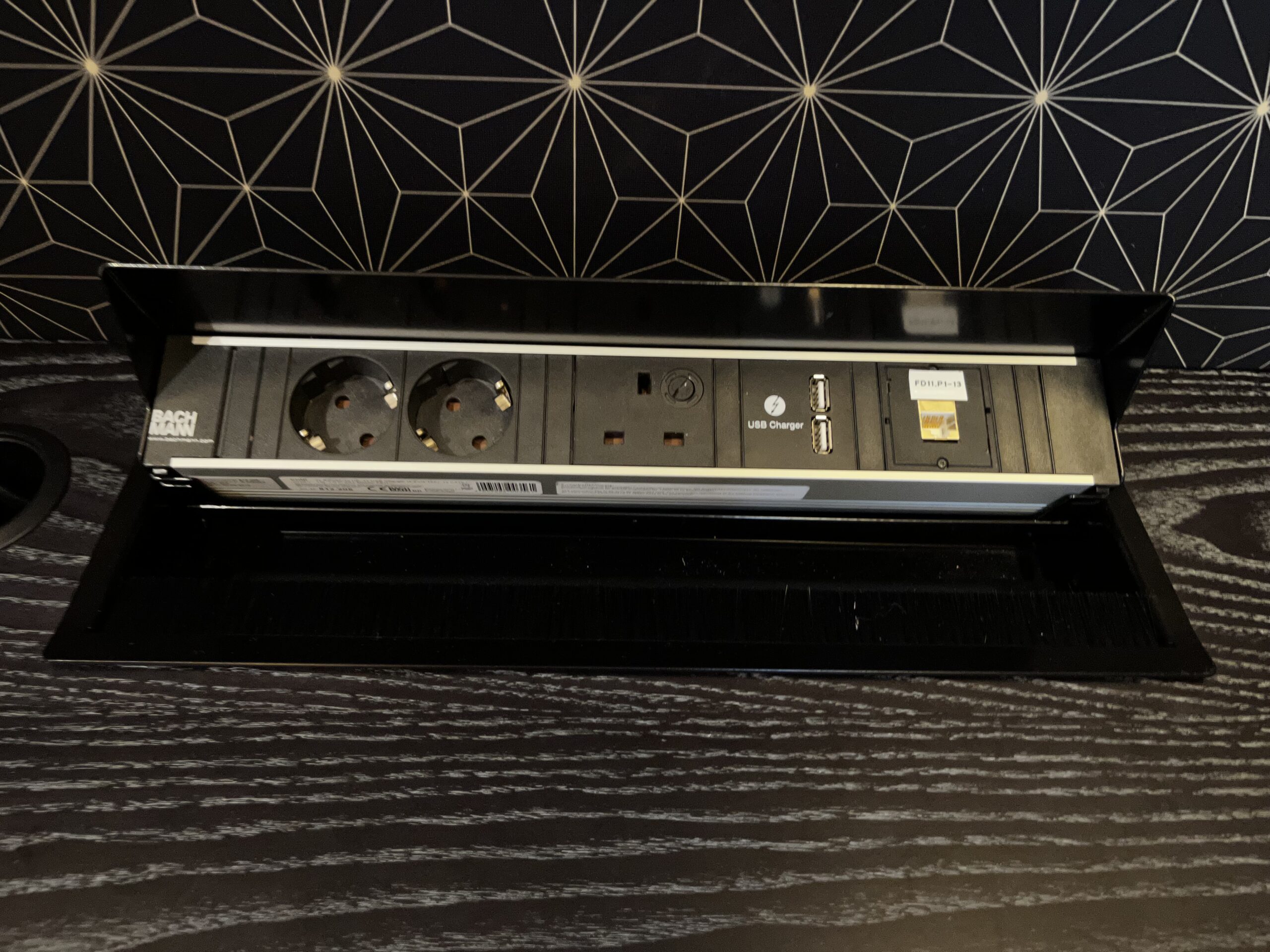 Dann folgt das Wohn/Arbeitszimmer mit einer Couch vis a vis vom TV und am anderen Ende dann der Schreibtisch. Für gute Musikqualität ist ebenfalls mit der kleinen aber feinen Bose Anlage gesorgt.