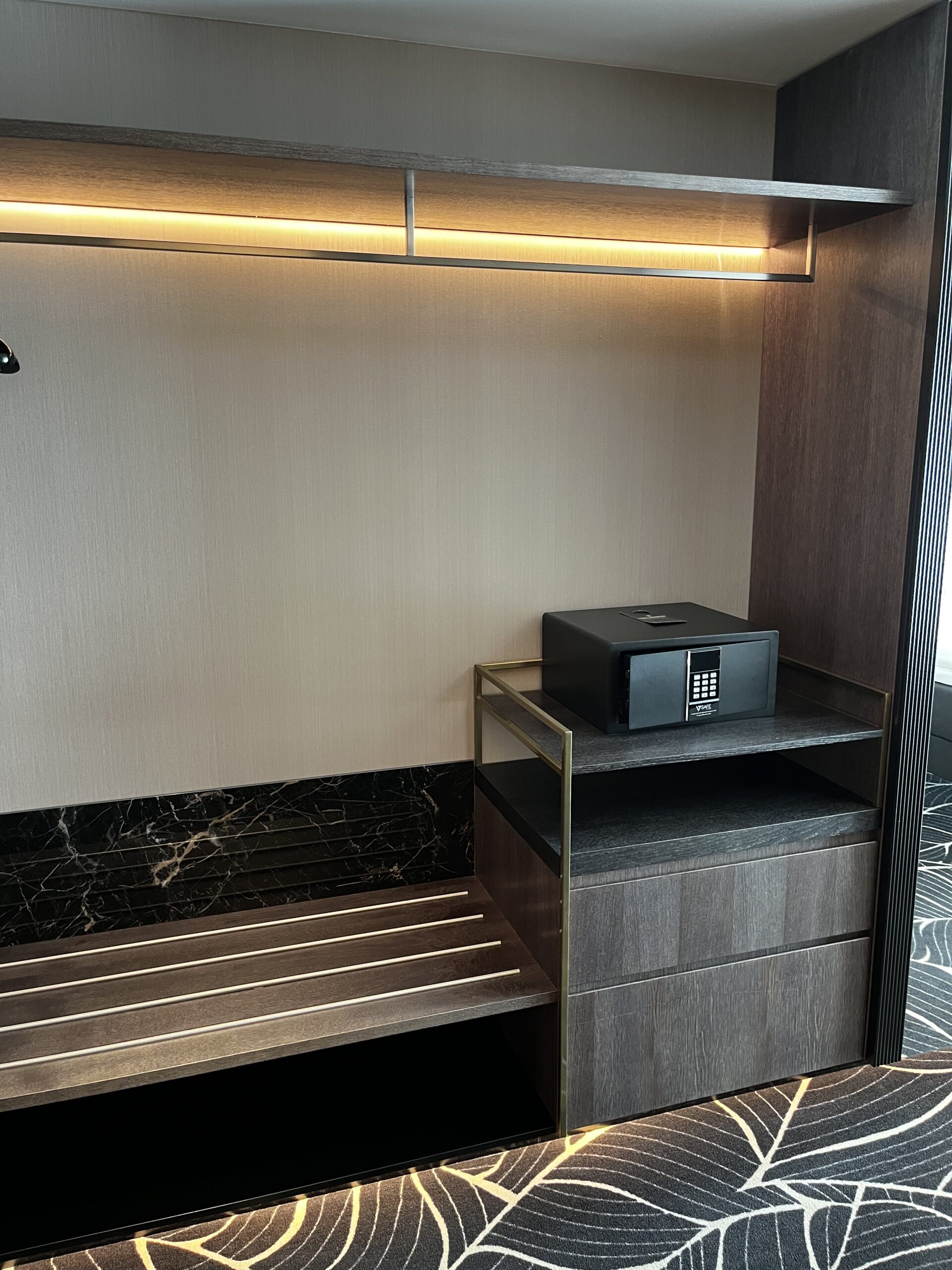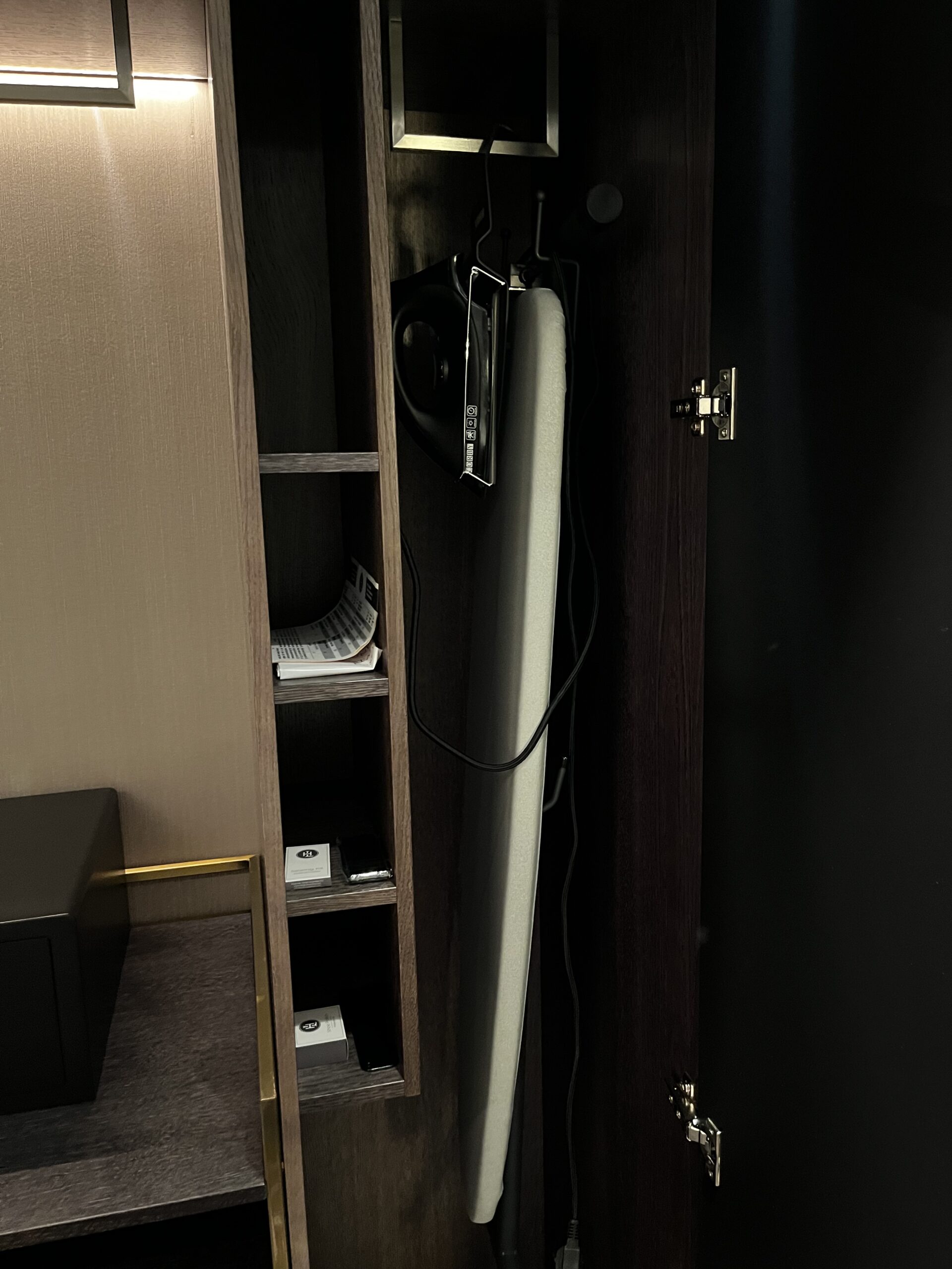Einen kleinen Schrank hat es auch (neben dem Safe) worin sich noch ein Bügelbrett und andere Kleinigkeiten verbergen.
