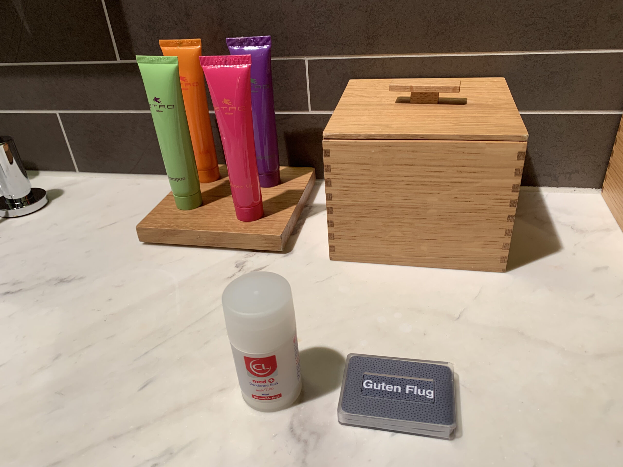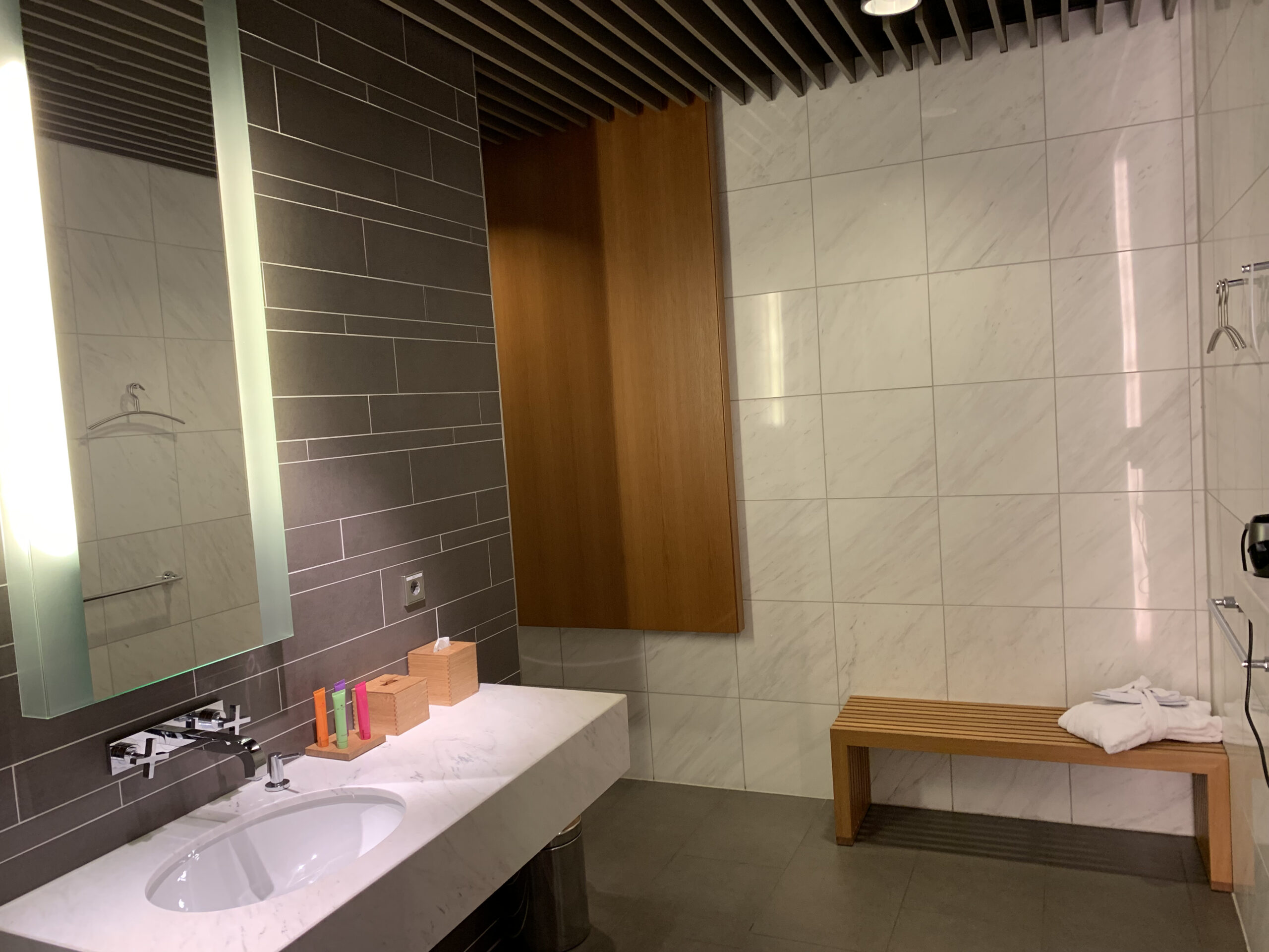 Daneben hat es noch mehrere Badezimmer (eine mit Badewanne) und man findet hier auch hochwertige Pflegeprodukte. Die berühmte Lufthansa Ente darf hier natürlich auch nicht fehlen, allerdings wird diese nun vom Personal Assistent gebracht.