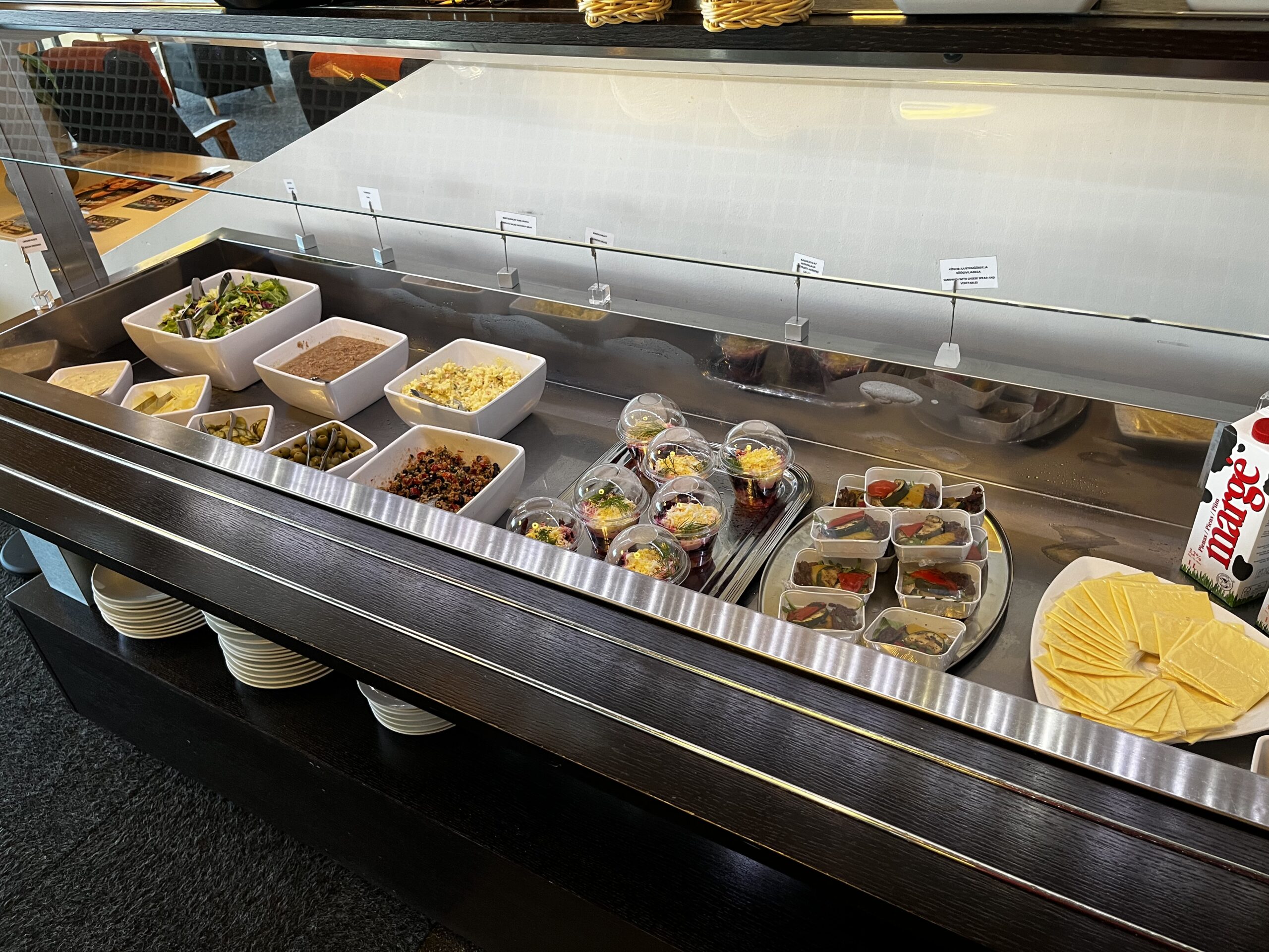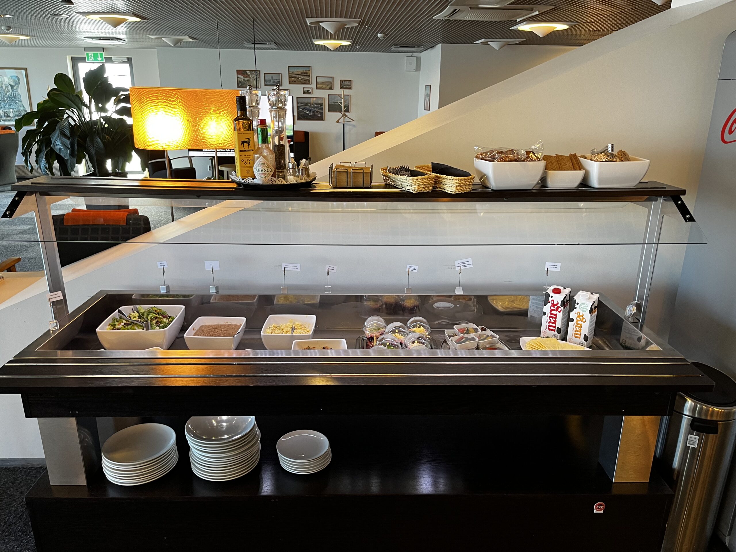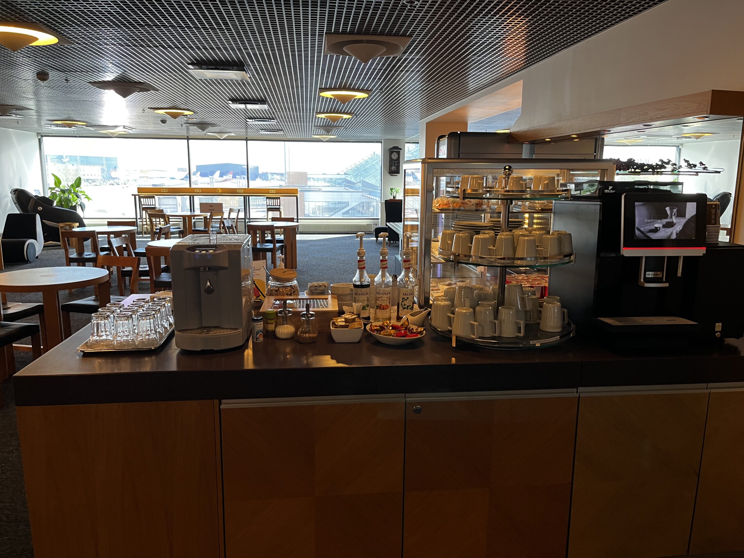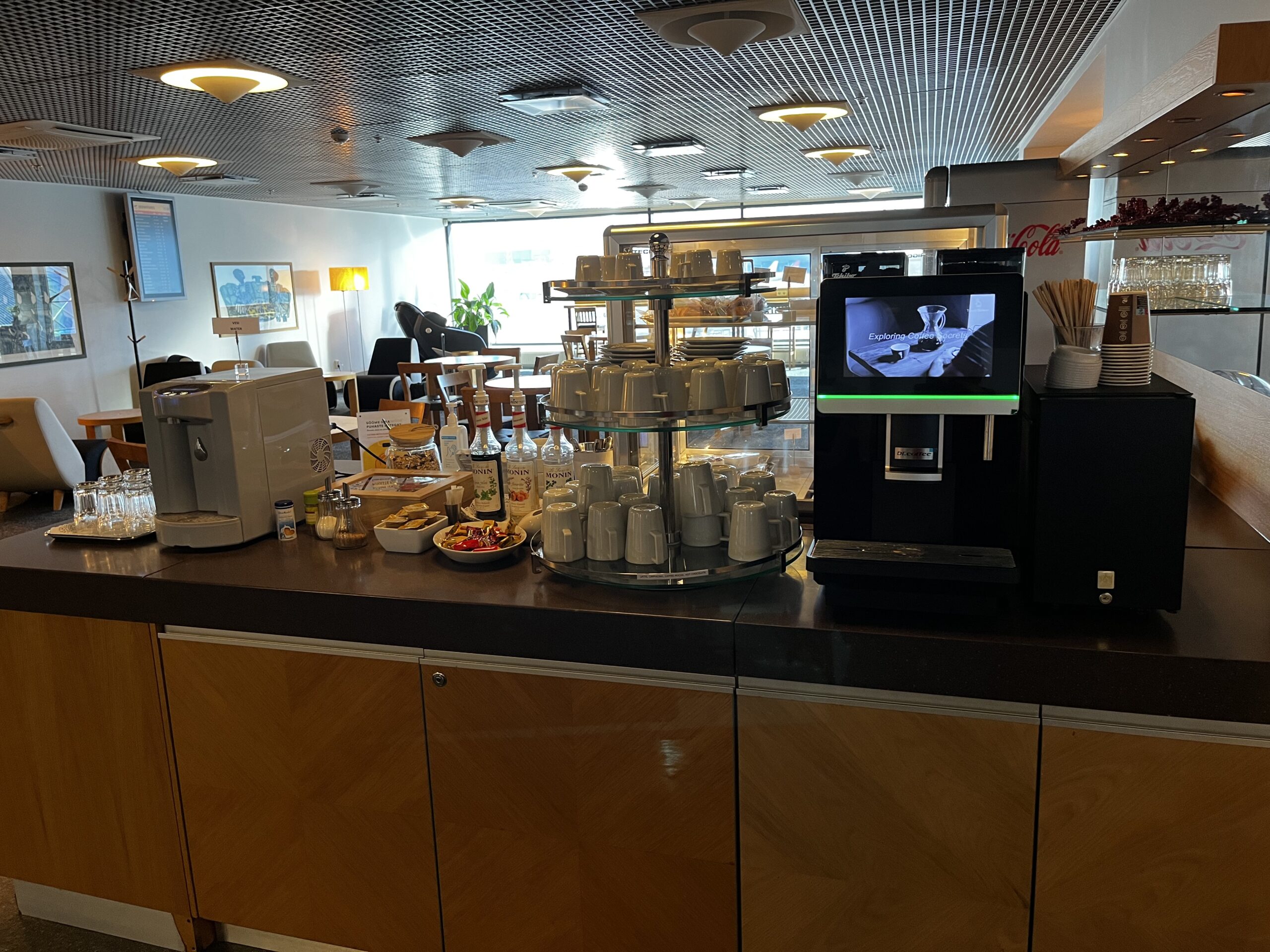 Dazu hat es noch eine Salatbar, wie auch kleine Sandwiches in der Lounge die ich als ausreichend beschrieben würde. Kaffee, Cola etc kann man sich im selbst aus dem Kühlschrank nehmen oder am Kaffeeautomat machen.