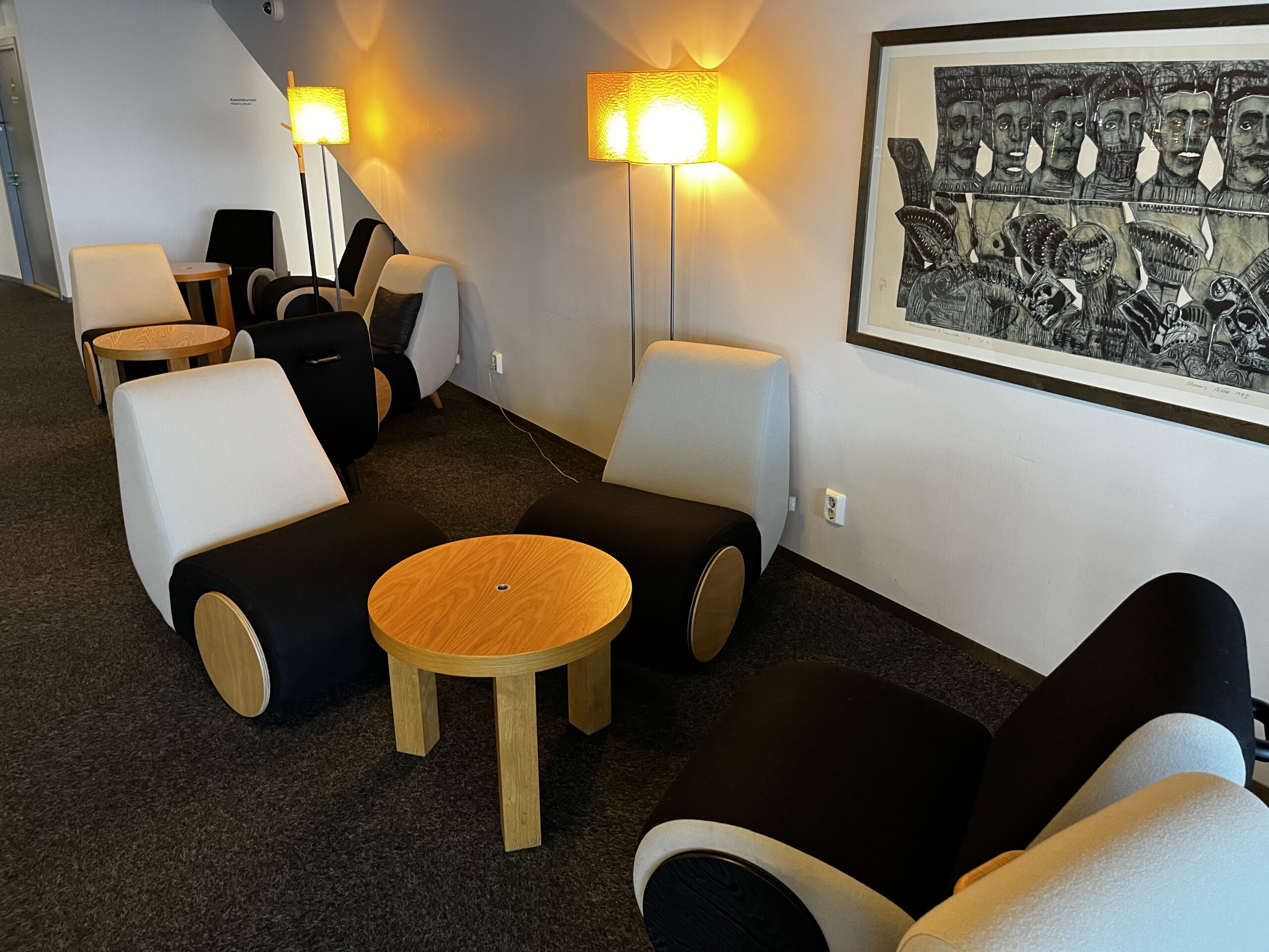 Wie so oft besteht diese Lounge grundsätzlich nur aus einem grossen Raum, dazu kommen aber noch abgetrennt zwei kleine Arbeitsbereiche, wie auch ein Sitzungszimmer.