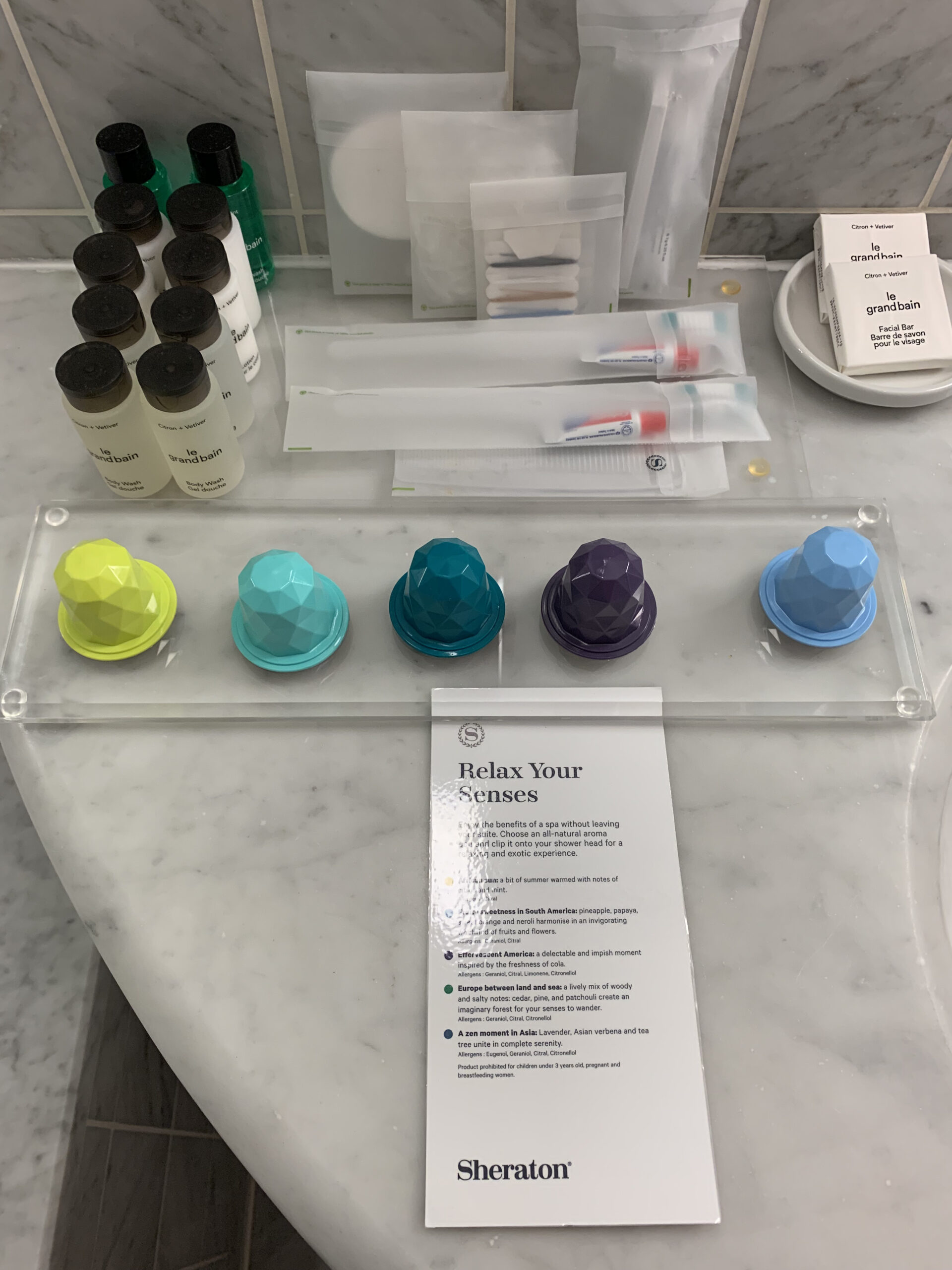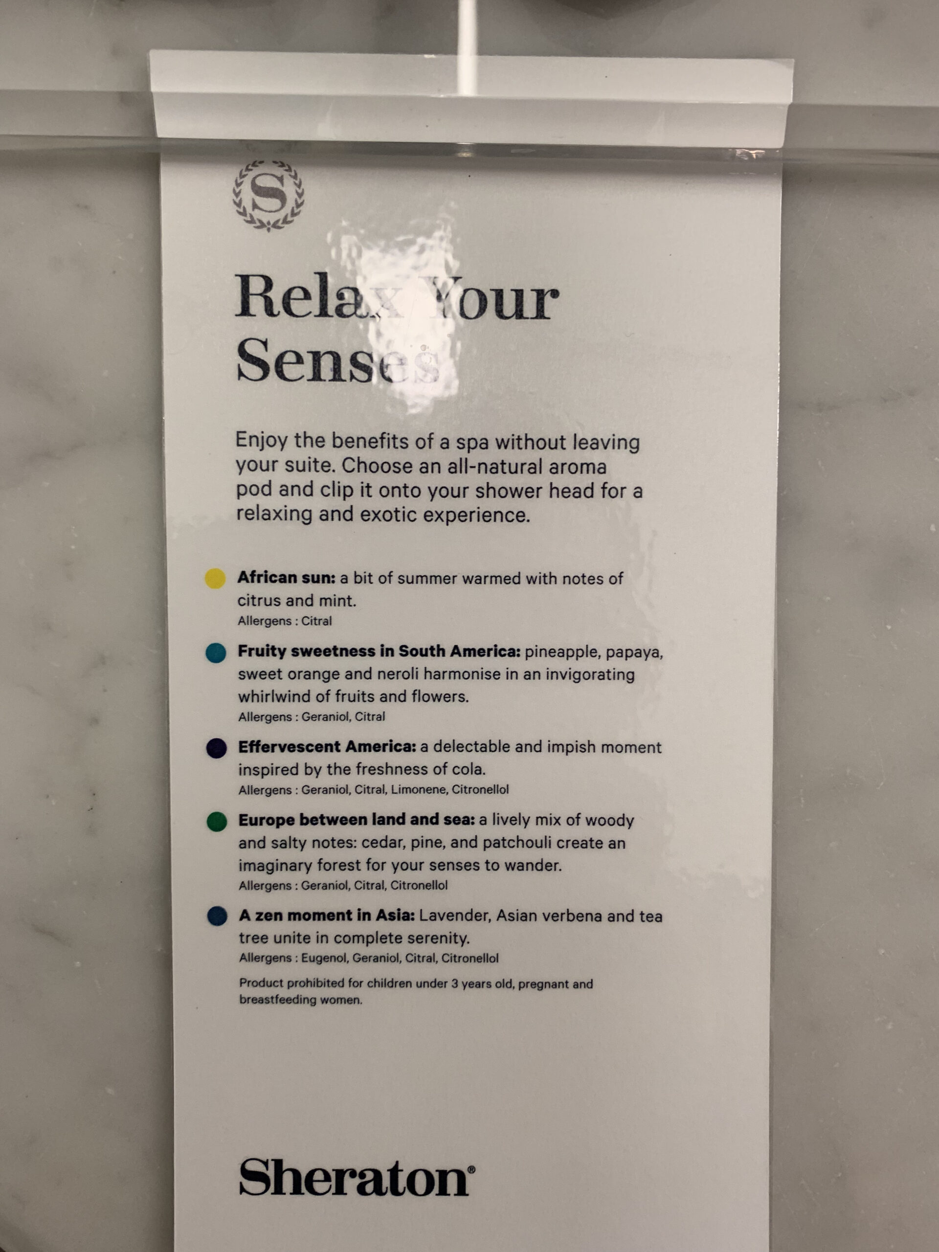 Wie erwähnt ist das Badezimmer renoviert und bietet neben den doch umfangreichen Amenities auch noch eine Relax your Senses" Dusche. Was dies ist? Ihr könnt verschiedene Kapseln mit unterschiedlichen Aromen in die Dusche Stecken. Quasi wie eine Nespresso Maschine nur gab es morgens keinen Kaffee Geschmack der einen aufweckt. Aber die Idee fand ich schon sehr schön und ich kannte dies auch vorher nicht.