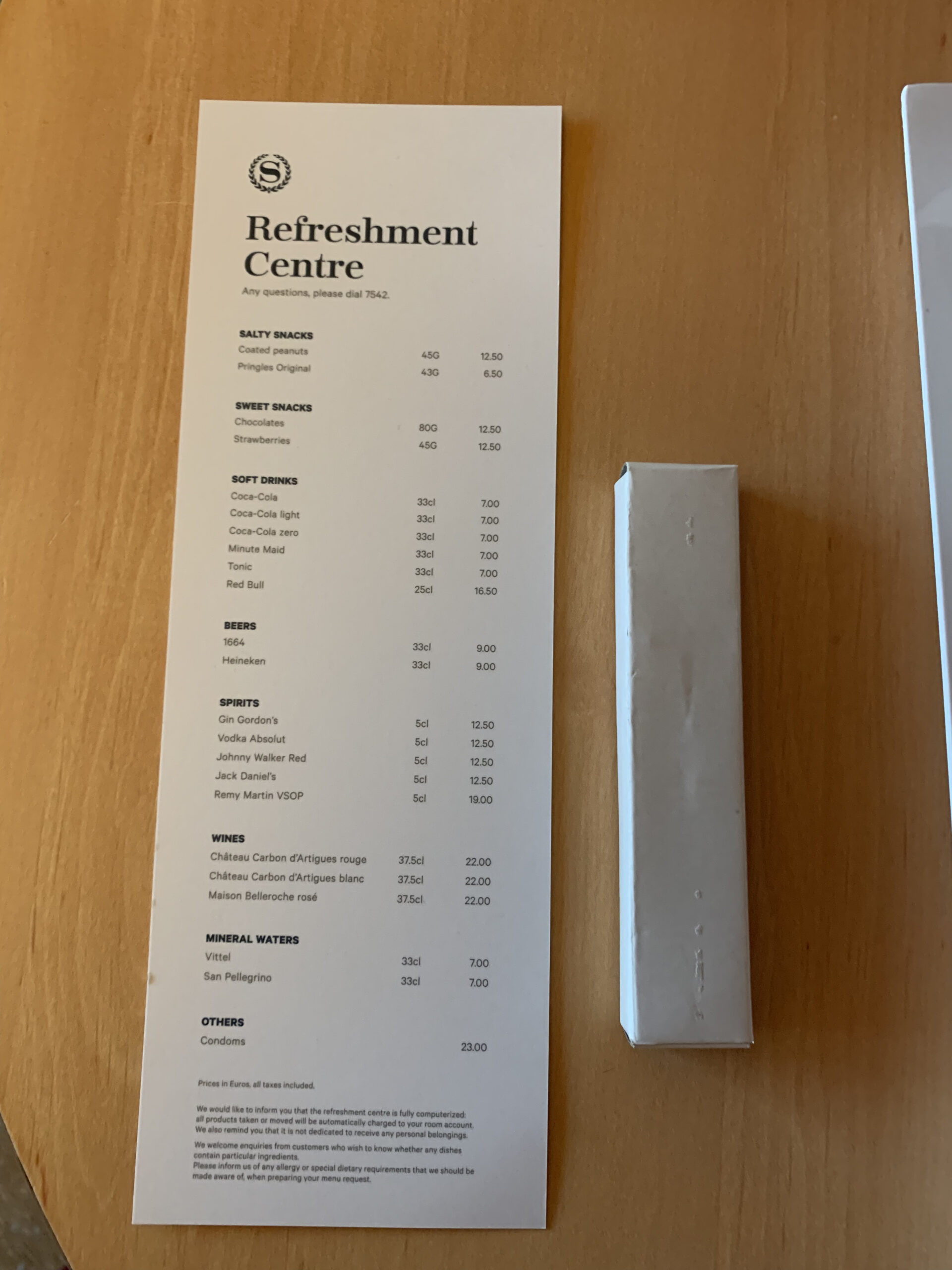 Dazu hatte es auf der anderen Seite noch eine kleine Minibar und zwei kleine Evian Flaschen die gratis waren. Eine Möglichkeit noch Kaffee und Tee zuzubereiten gab es ebenfalls, leider keine richtige Kaffeemaschine.