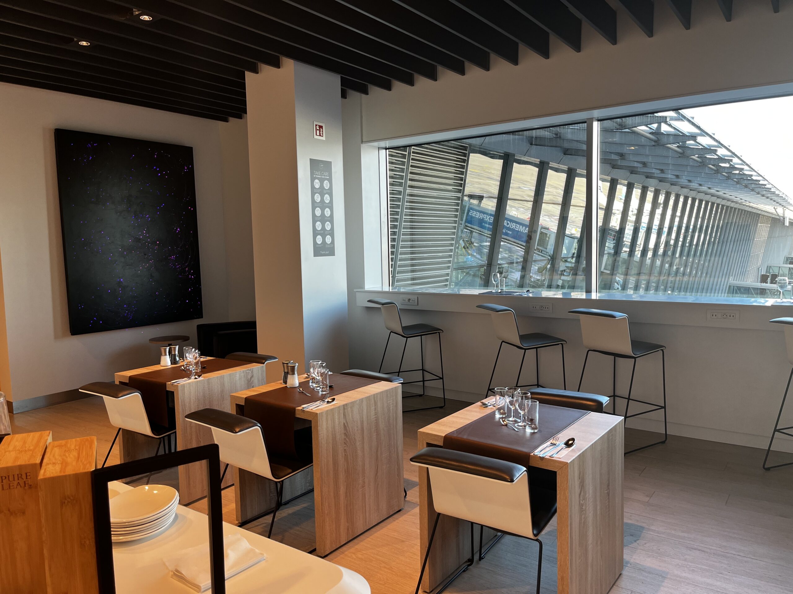 Die Lounge weist eine L-Form auf, bei dem ein Teil mit Blick auf das Vorfeld glänzt. Zusätzlich gibt es einen Neuhaus Shop in der Lounge.