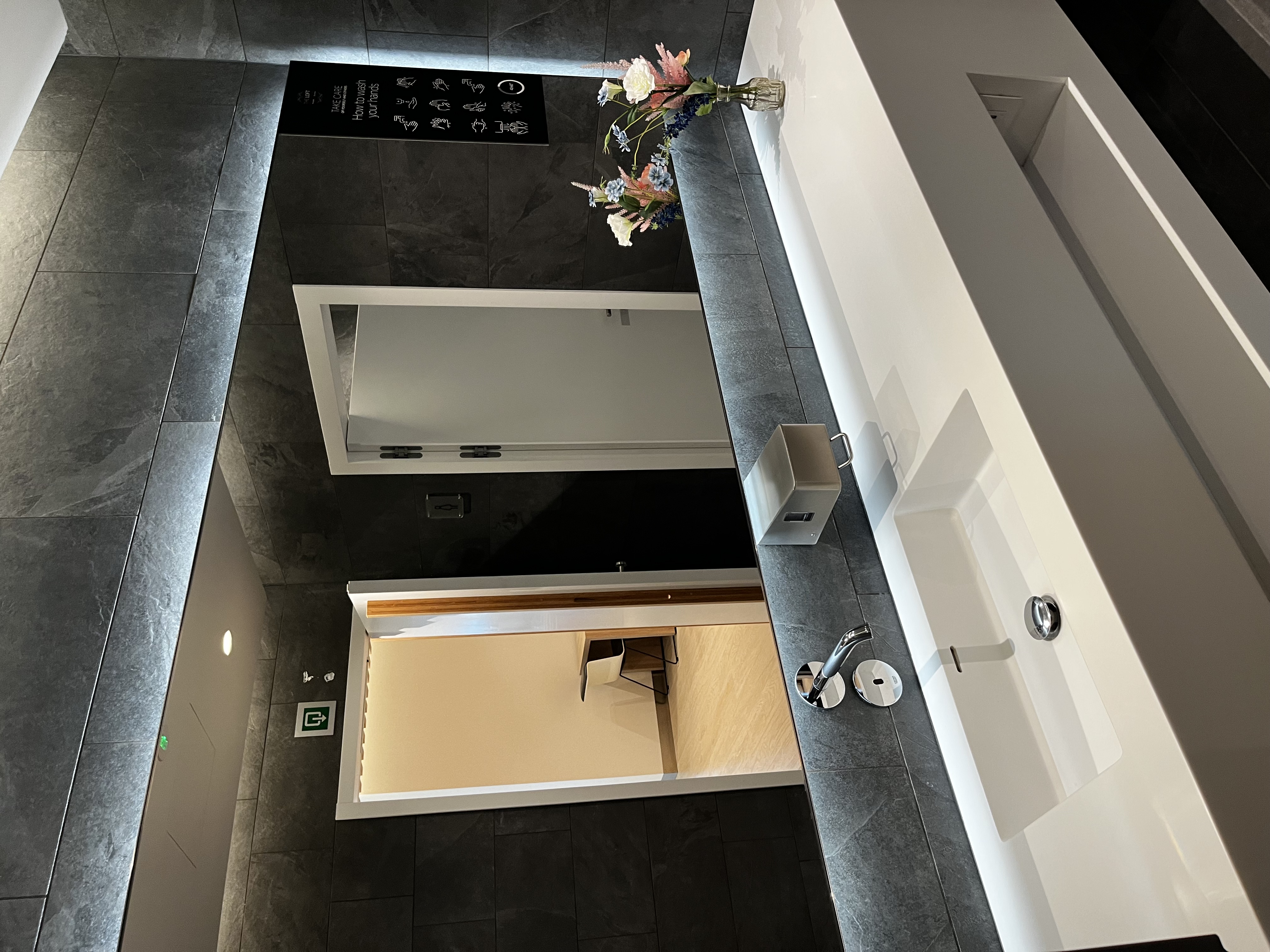 Neben den obligaten Toiletten, können Duschen genutzt werden. Der Entspannungsbereich, ein Ruheraum mit einem Sternendach, ist auf Anfrage verfügbar. Massagesitze sind auch verfügbar und können auch genutzt werden.