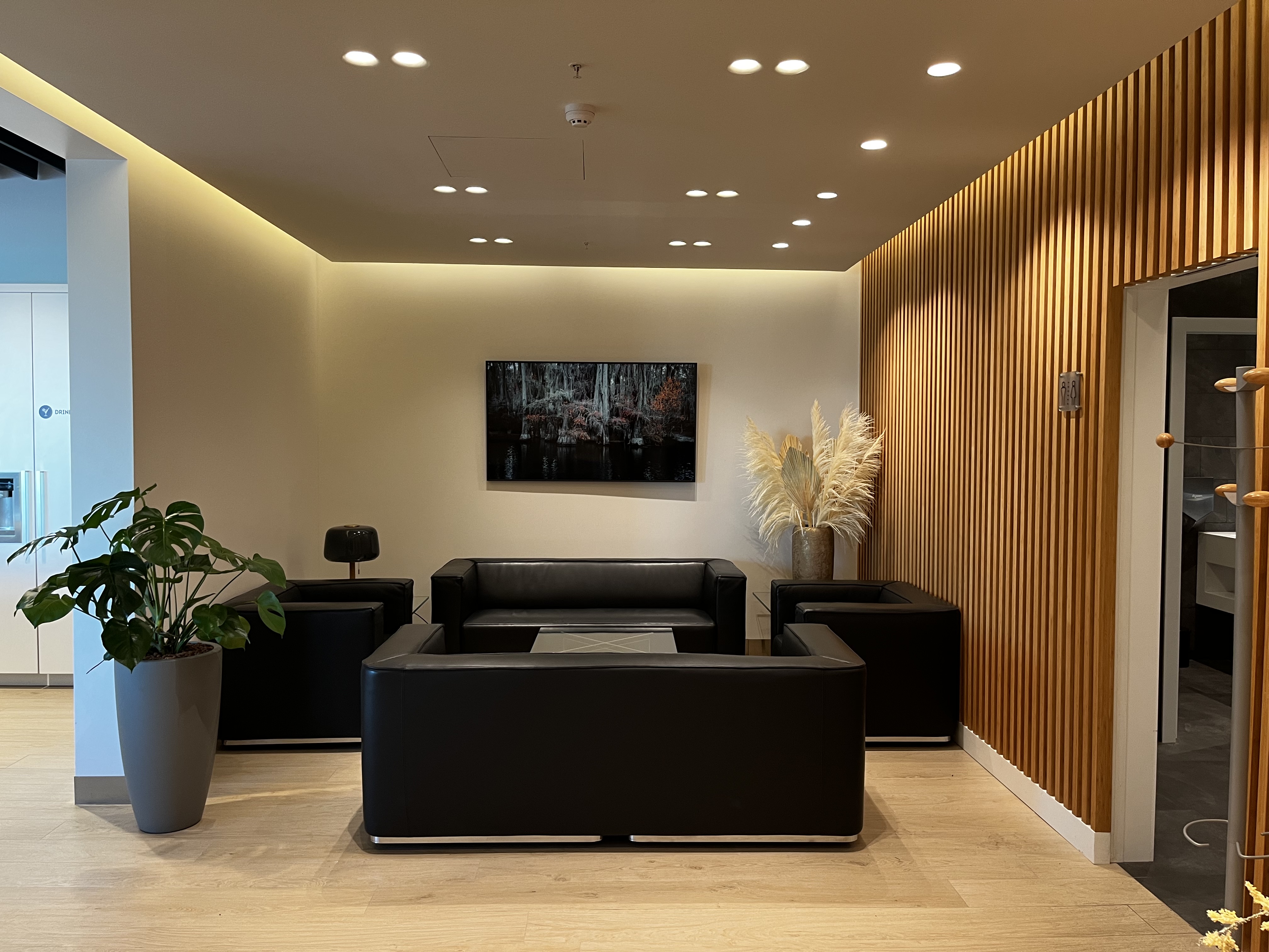 Da das Toyota Europa Hauptquartier in Brüssel ist, hat Lexus sich in der Lounge eingemietet. Einige Stilelemente sowie ein gewisses Produkt Placement macht diese Lounge speziell. Die Luxusmarke Lexus bringt das Branding elegant und dezent an die Besucher.