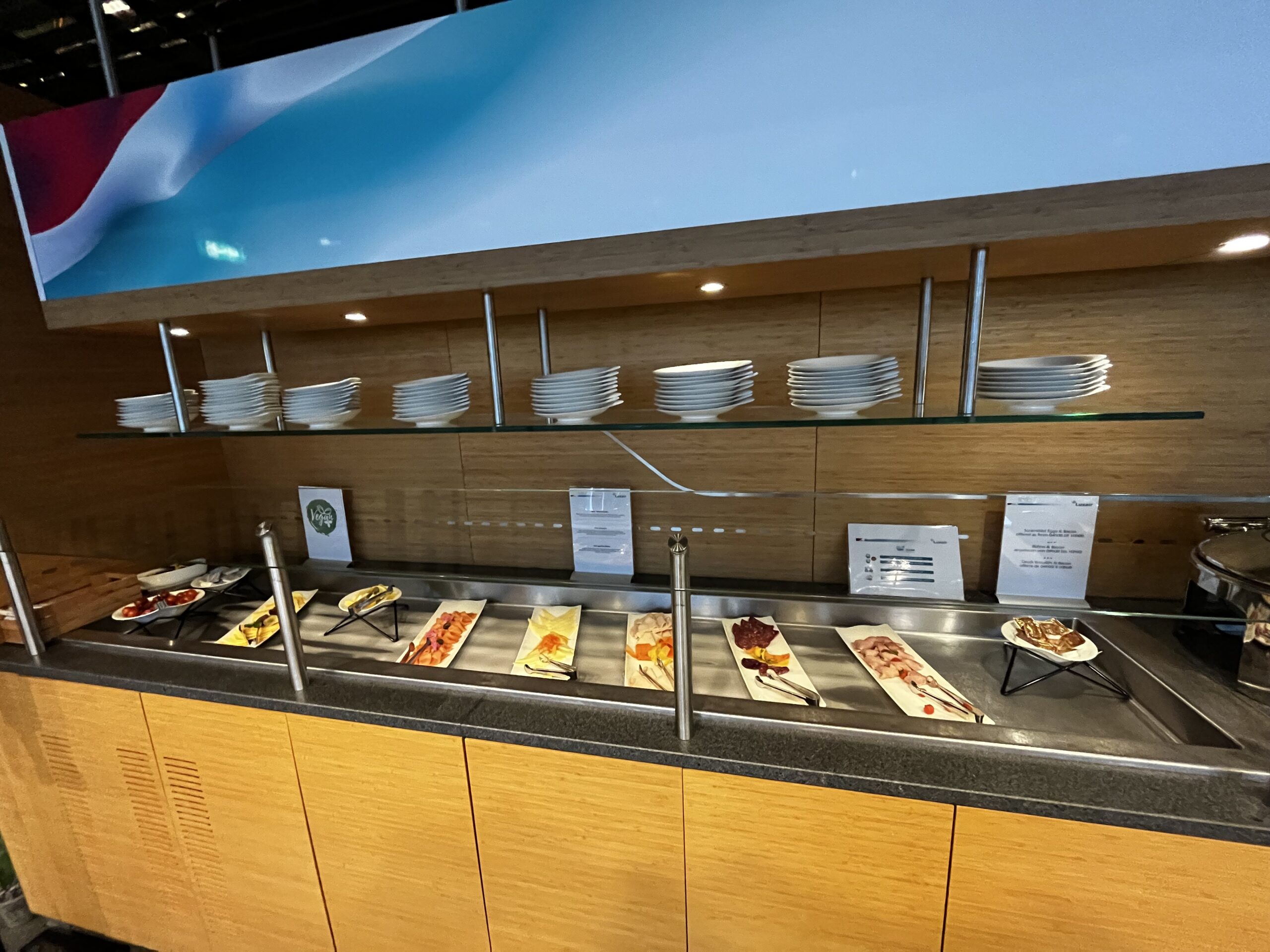 Ehrlich gesagt, es hat ja nur eine Lounge am Flughafen – für mich war sie für den kurzen Aufenthalt absolut ausreichend. Etwas lachen musste ich bei den Bildern auf Priority Pass – also so werdet ihr nicht so am Tisch bedient. Dennoch war es meiner Meinung nach absolut ausreichend und auch für einen nächsten Aufenthalt weiss ich, was ich hier bekomme.