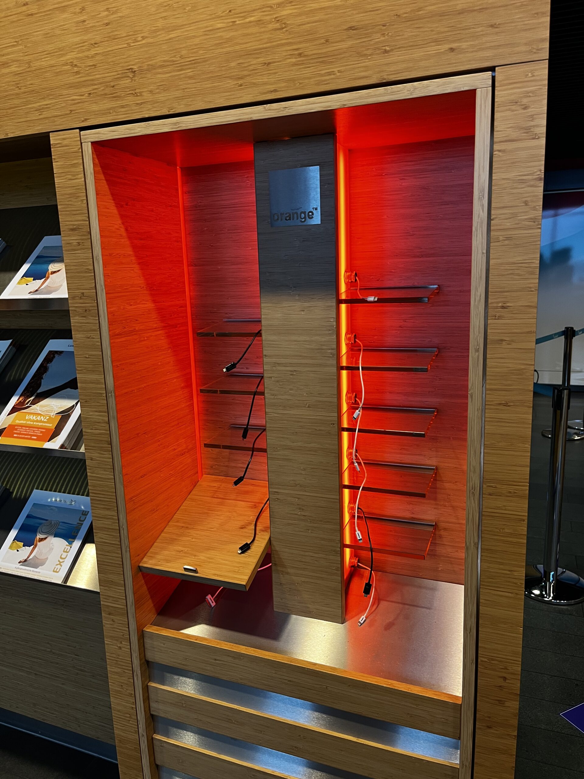 Ein kleines aber schönes Detail ist noch, dass es eine Ladestation für Mobiltelefonen gibt, wie auch einige Zeitschriften.