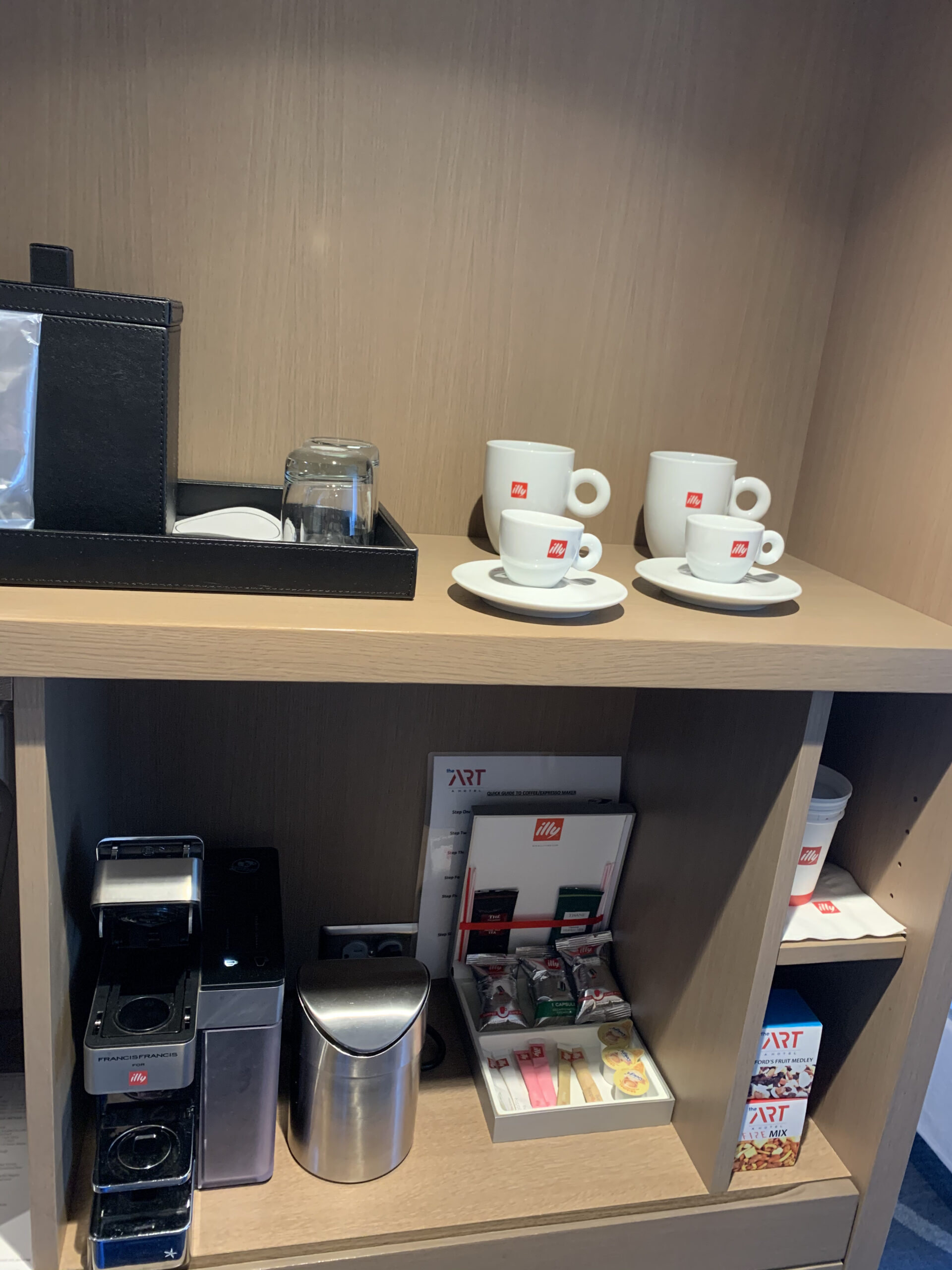 Ein echtes Highlight war für mich der Bereich beim Eingang: Dort befanden sich ein geräumiger Kleiderschrank, ein Safe, eine hochwertige Amici-Kaffeemaschine – und: eine kostenfreie Minibar, die täglich aufgefüllt wurde.