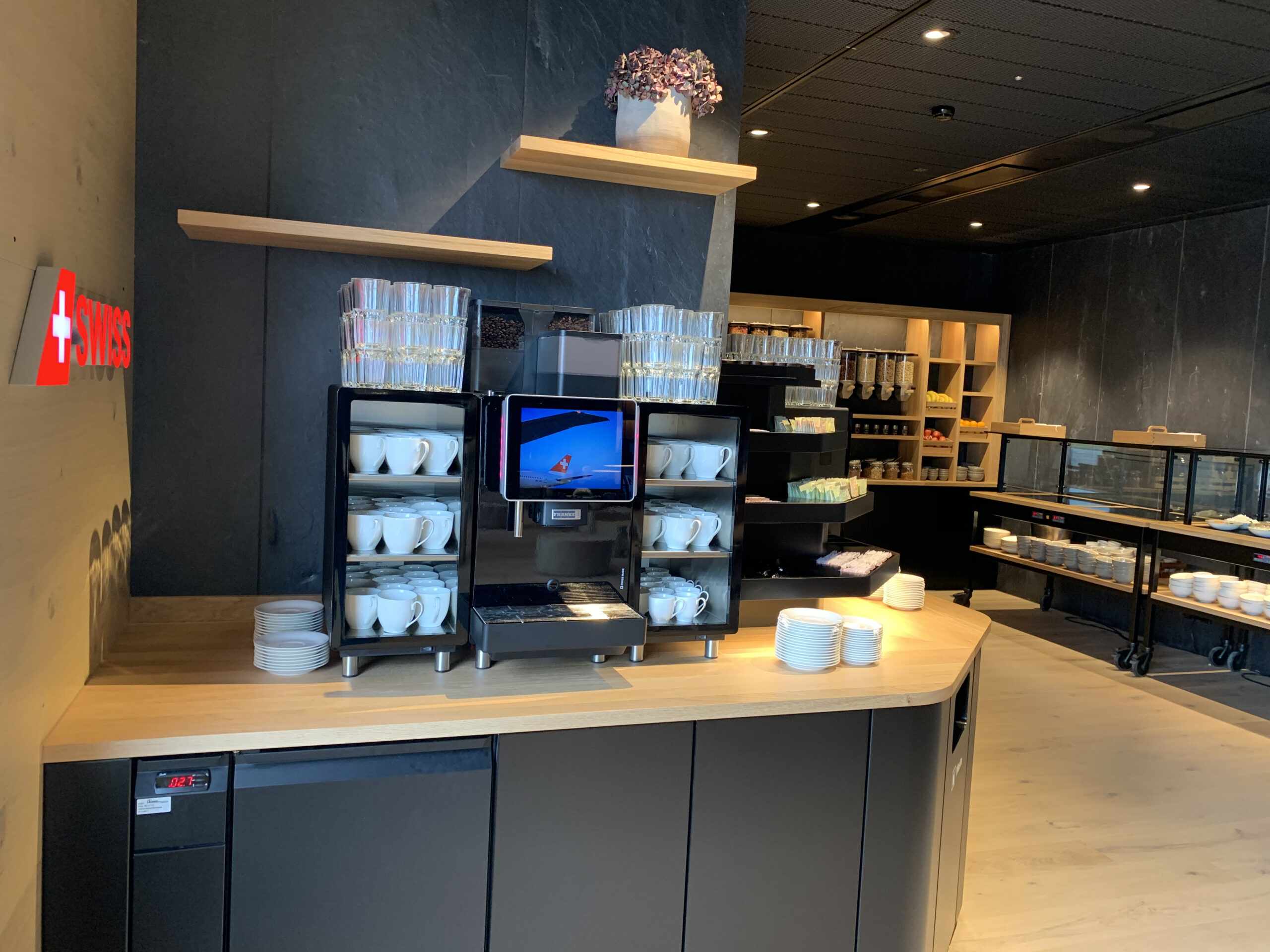 Nebenan befindet sich nun die Swiss First Class Lounge, dort muss man nur kurz schellen und kann dann auch diesen Eingang benutzen. Die Review dazu findet ihr übrigens hier: https://lastmanboarding.ch/2022/07/21/review-swiss-first-class-lounge-zurich-zrh-terminal-a/