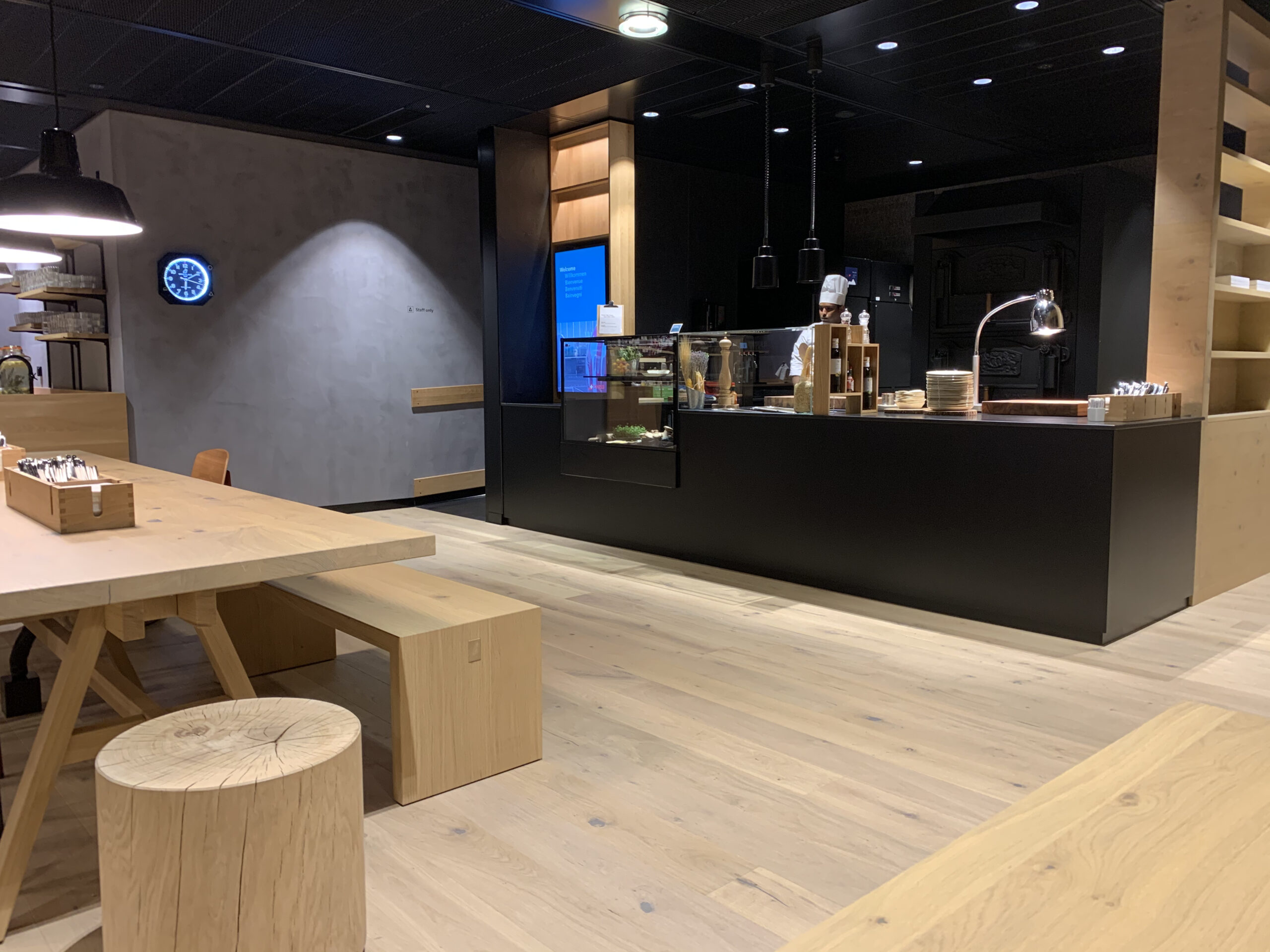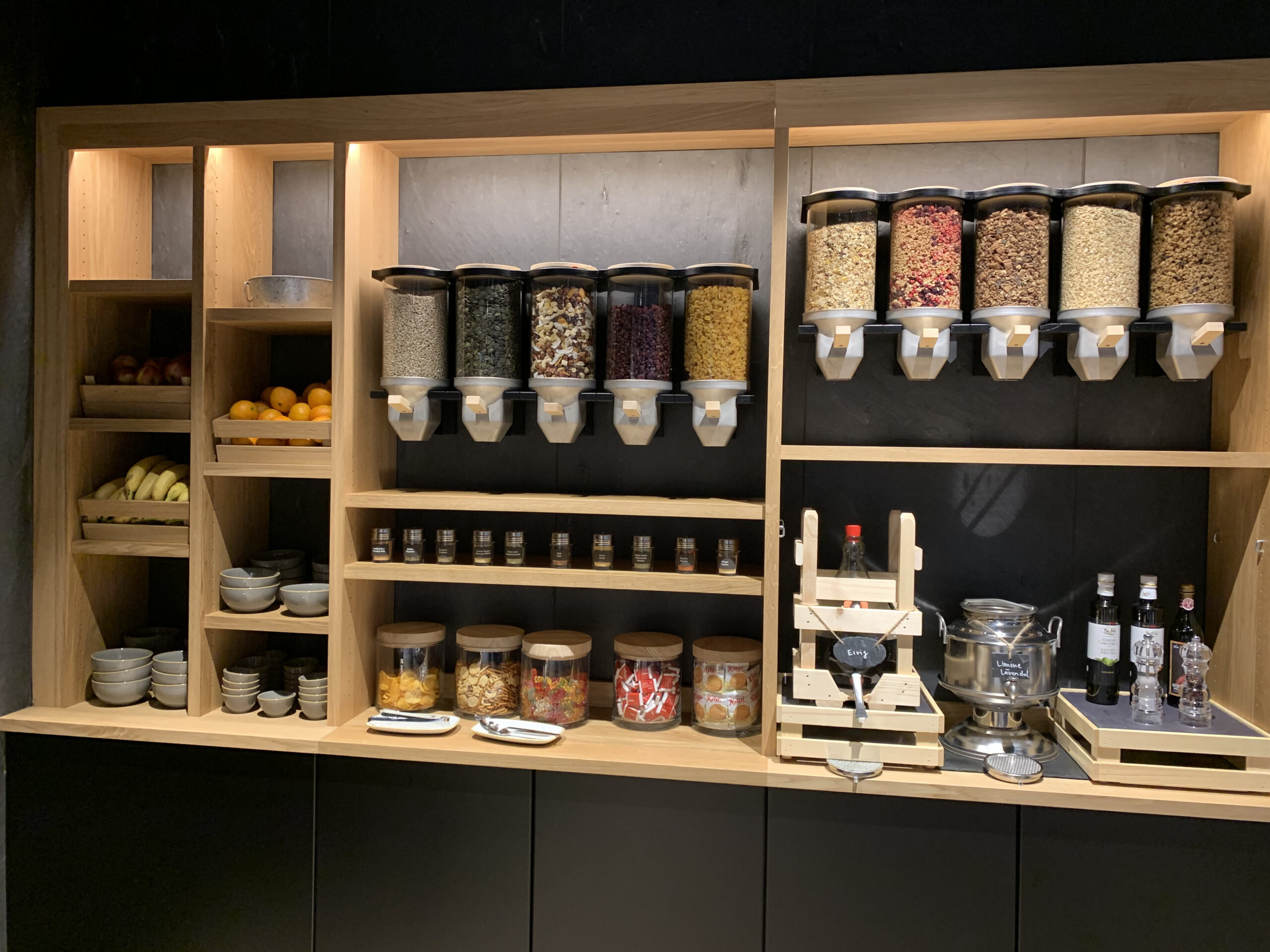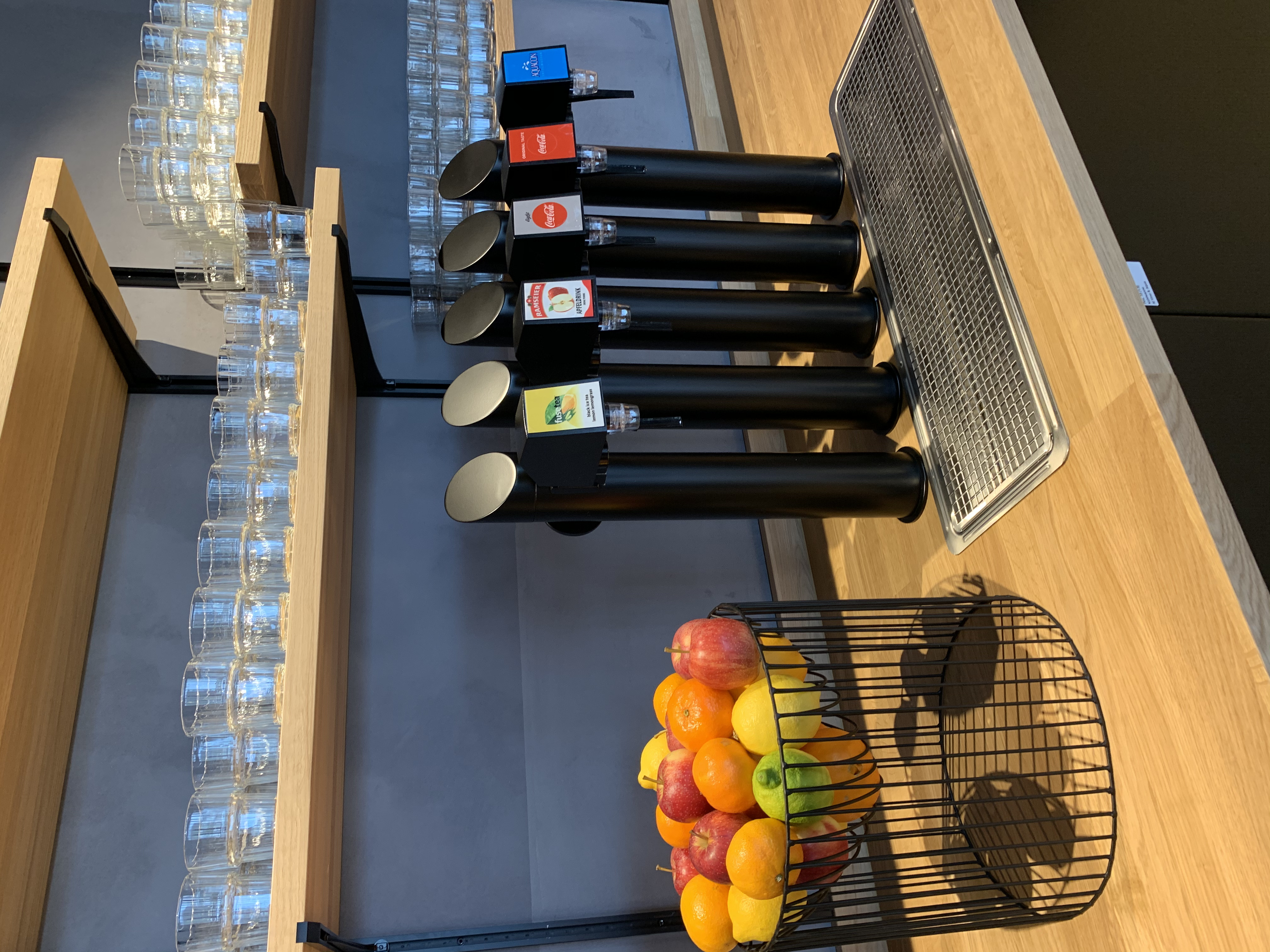 Ausserdem hat es eine doch reichliche Getränkeauswahl, eine Besonderheit ist sicherlich, dass der Wein aus eine Art Automaten" kommt. Dies ist aber kein grosses Problem, da es hier mehr um die Dosierung geht und die Qualität der angeboten Getränke ist auf jeden Fall gut. Auch hier ein besonderer Fokus auf Schweizer Produkte gelegt was ich sehr positiv finde.